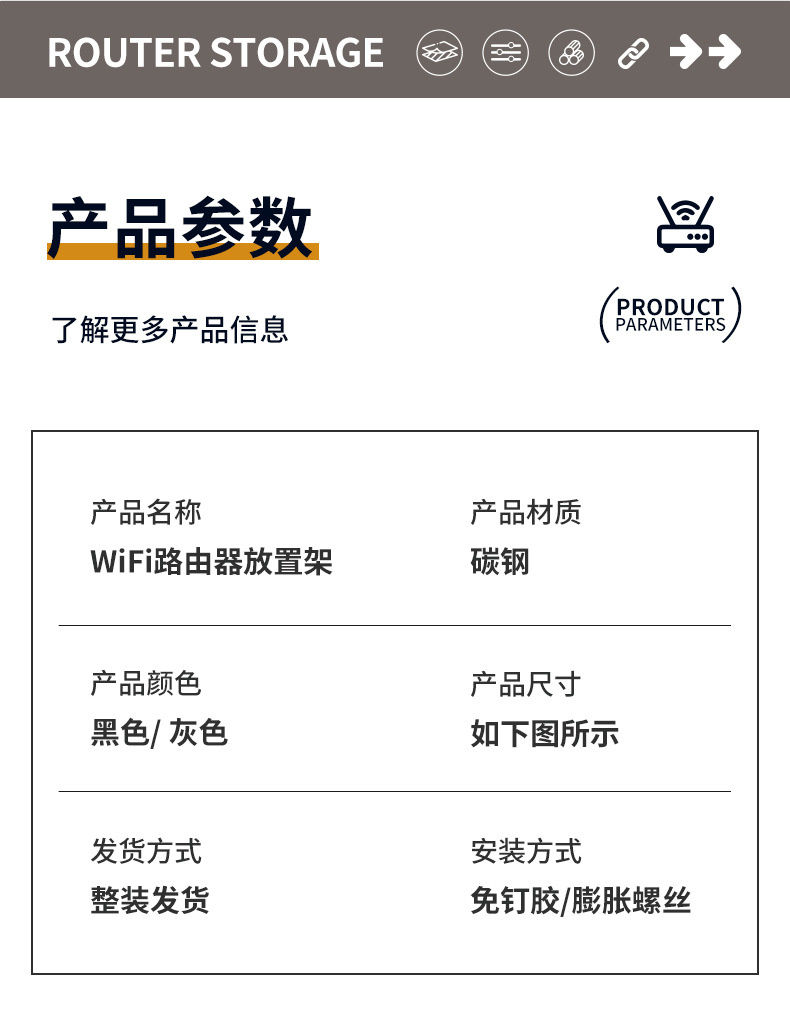 wifi路由器放置架墙上置物架免打孔电线机顶盒壁挂式桌面整理收纳