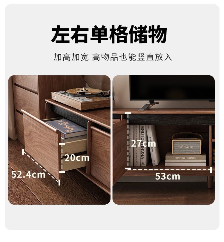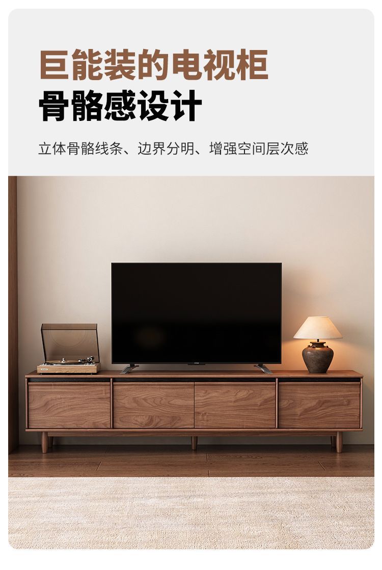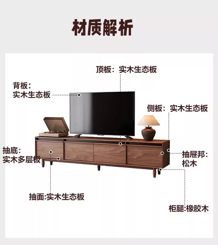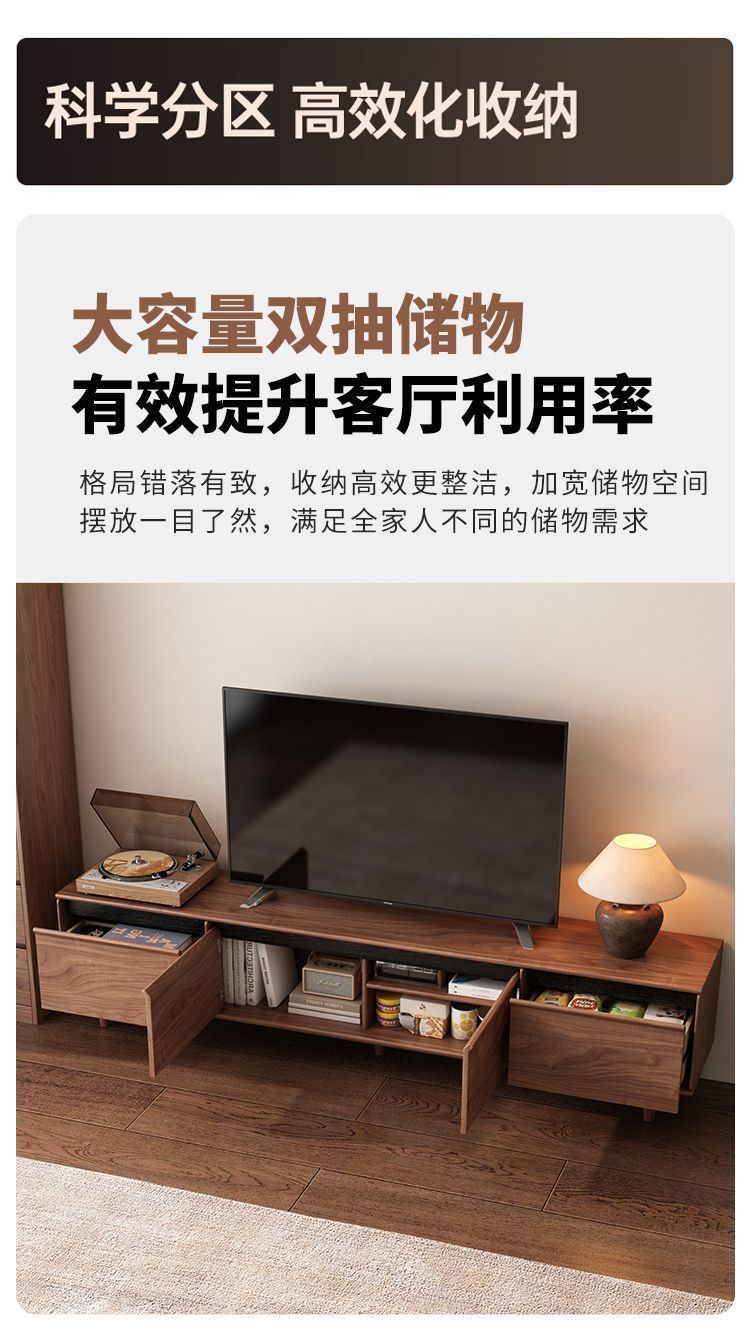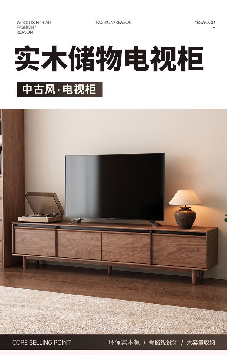 实木电视柜落地中古风客厅收纳储物柜一体小户型2025新款边柜组合