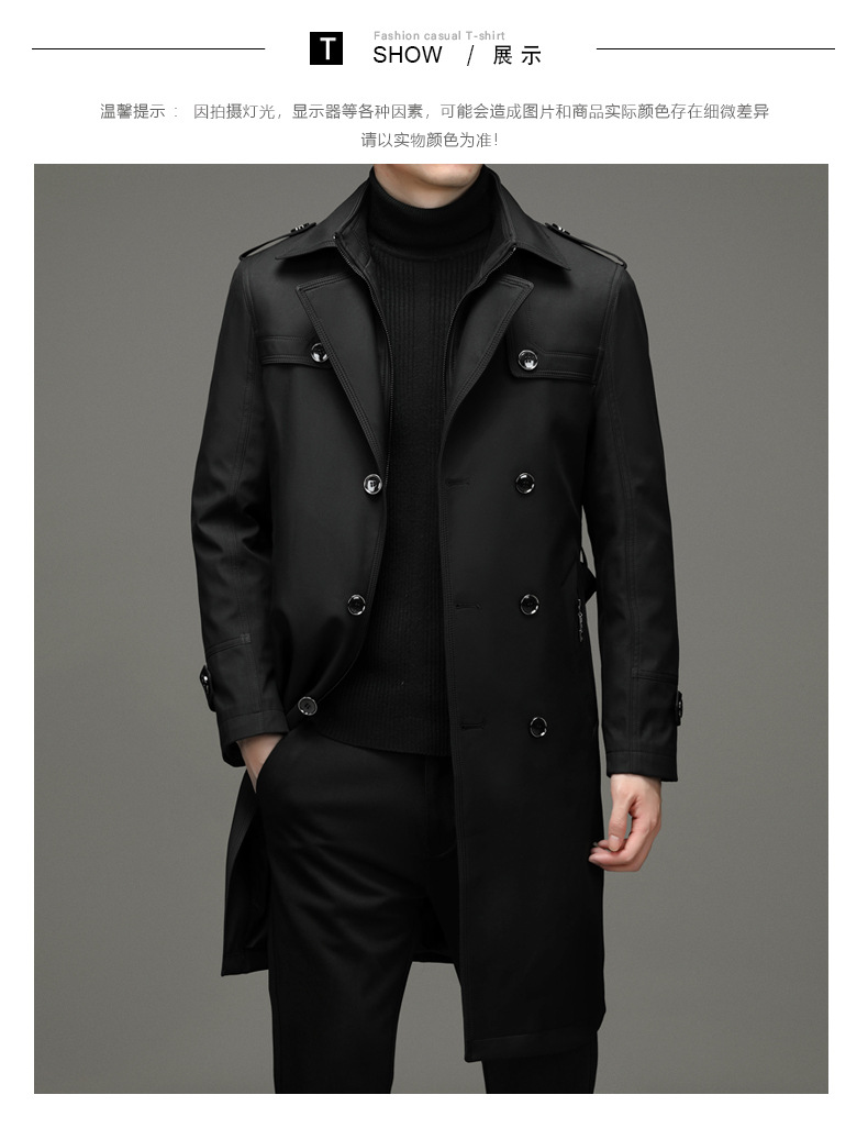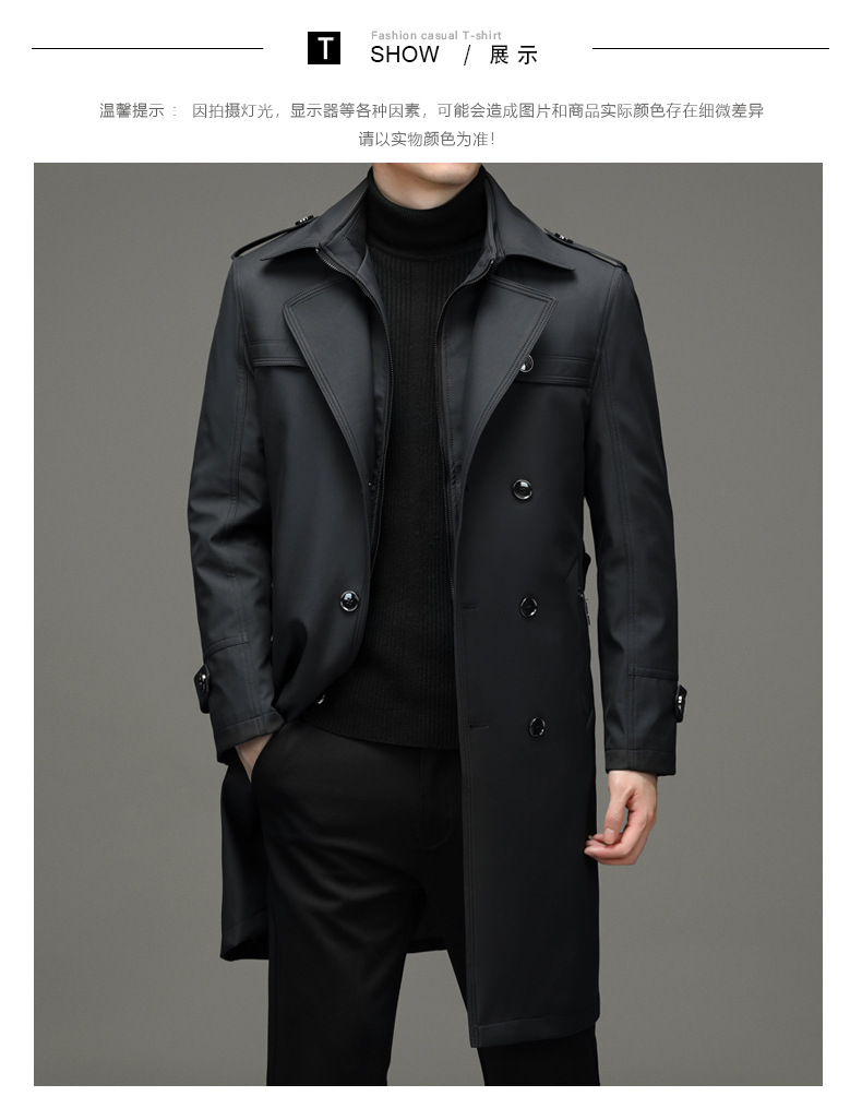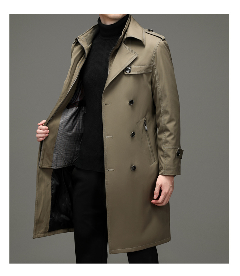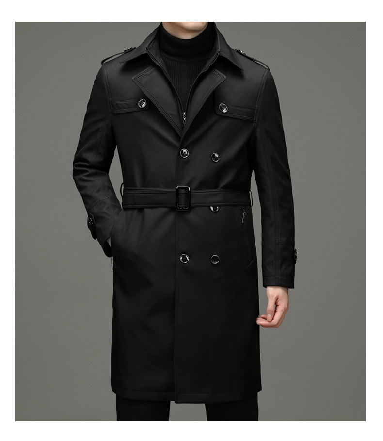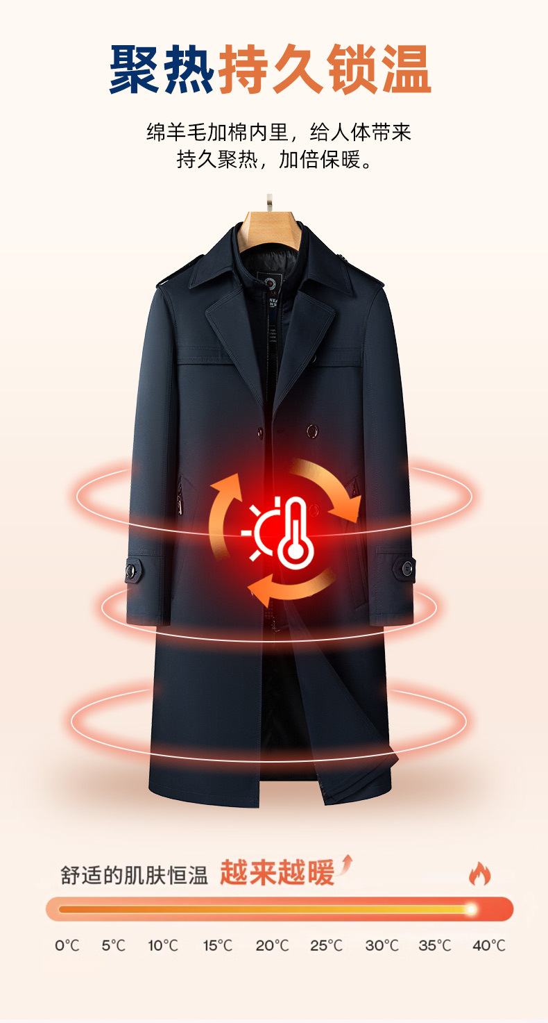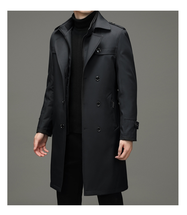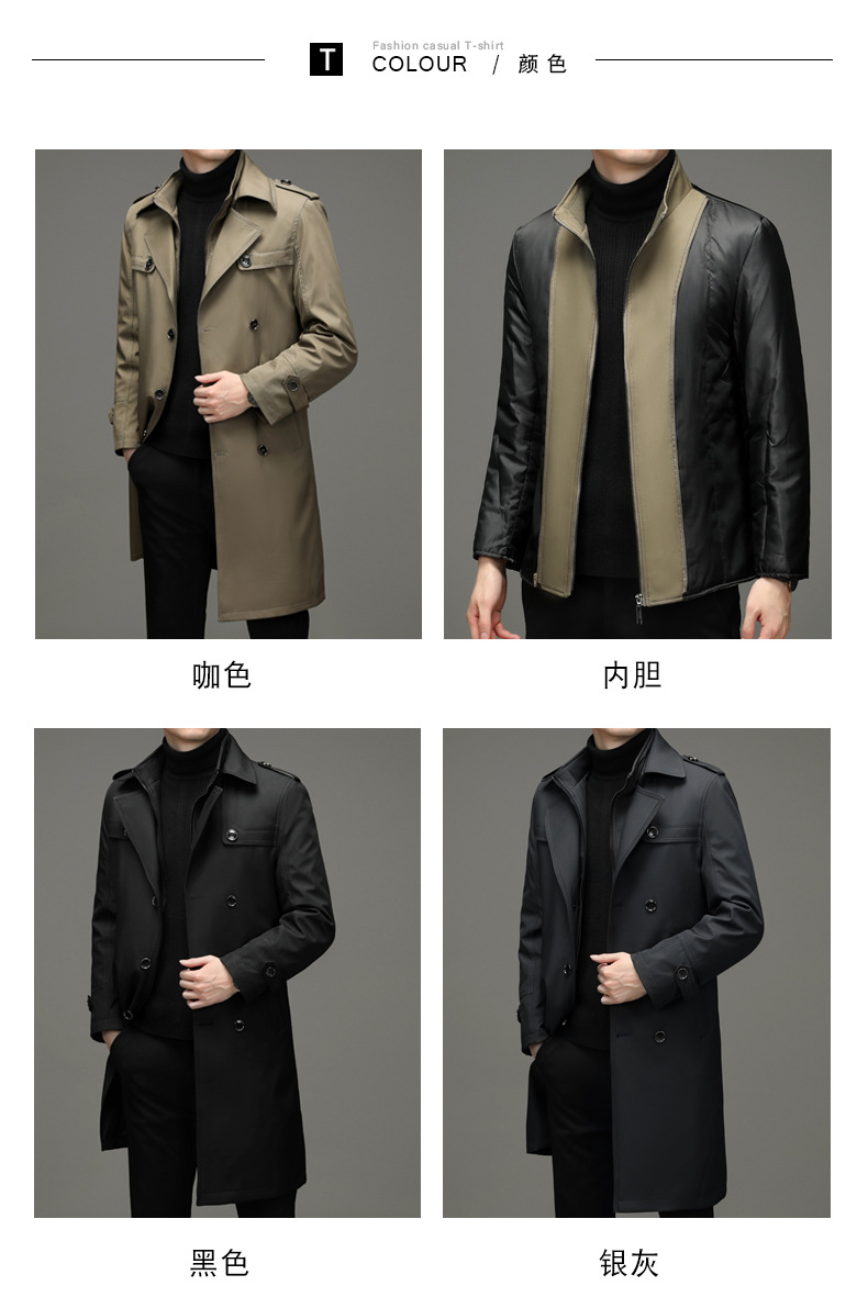 2025冬新款男士风衣长款过膝保暖西装领羊毛可脱卸内胆中年男外套