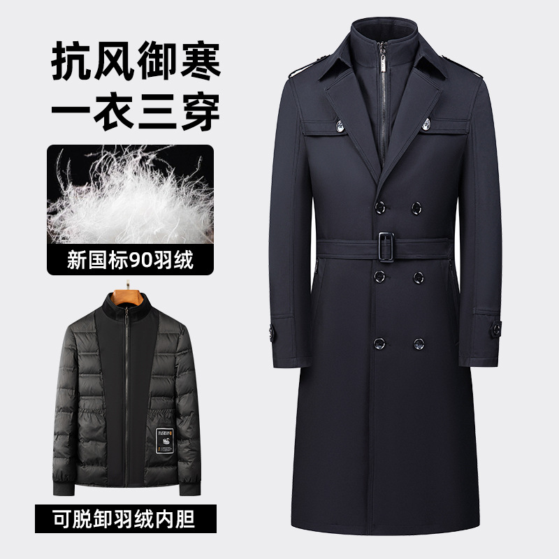 新国标90羽绒风衣秋冬新款可脱卸羽绒内胆一衣三穿长款过膝大衣男