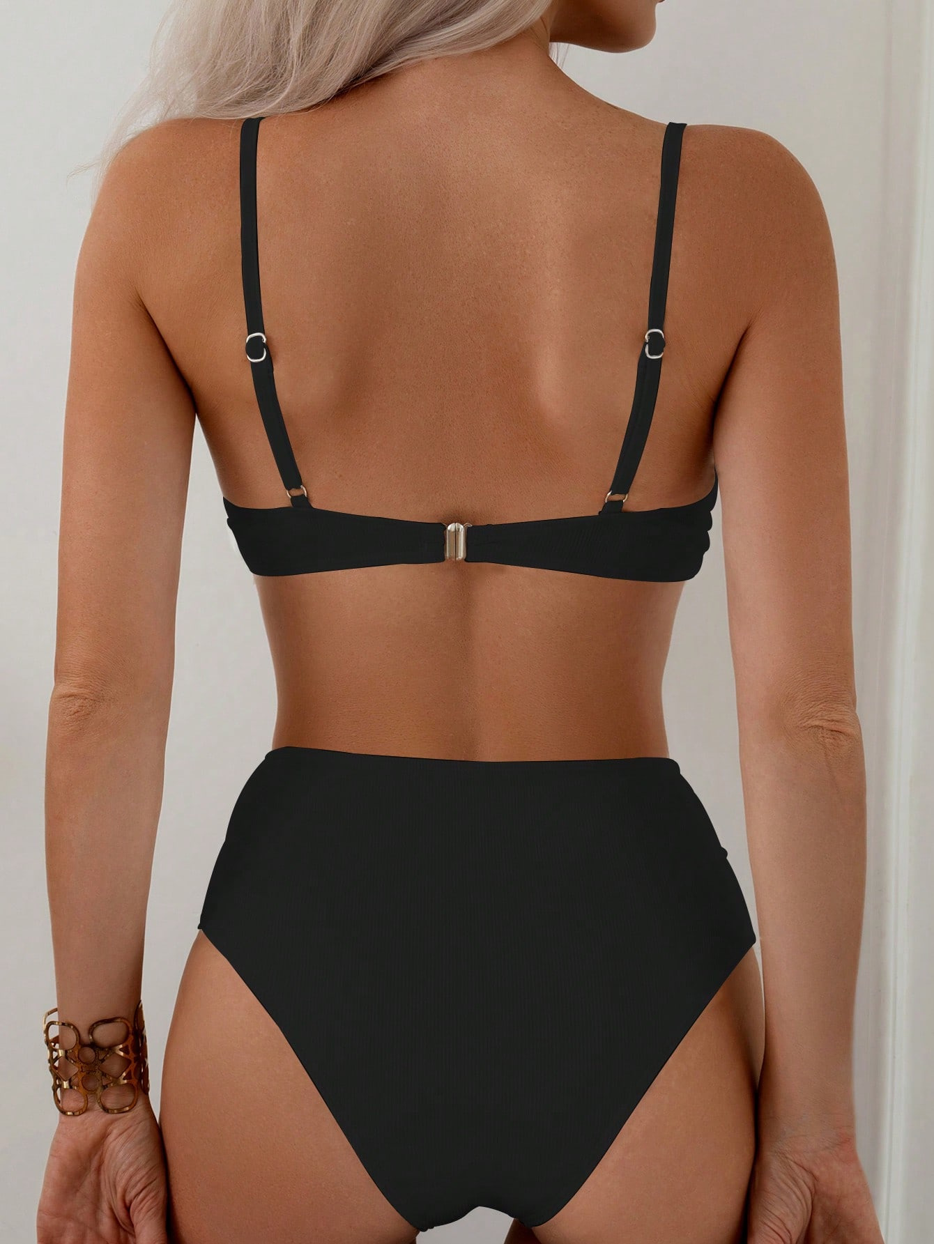 2025年新作 無地 スチールボーン入り 高級感 ビキニ レディース ハイウエスト ビーチ ヨーロッパ風 アメリカ風 Amazon 水着 ビキニ