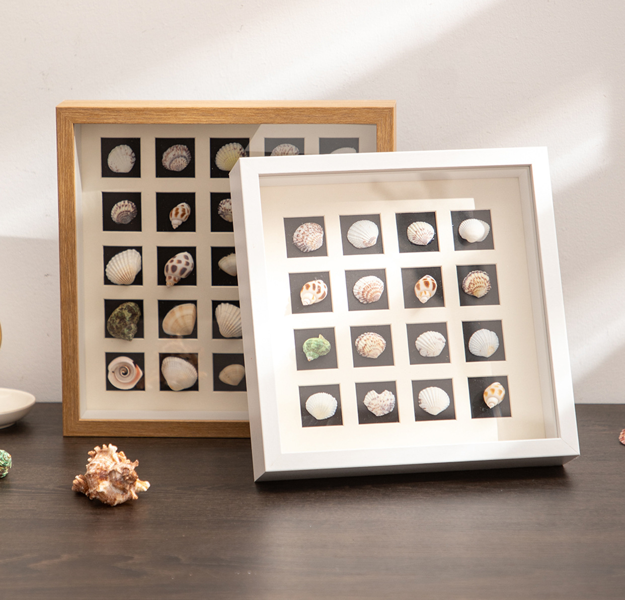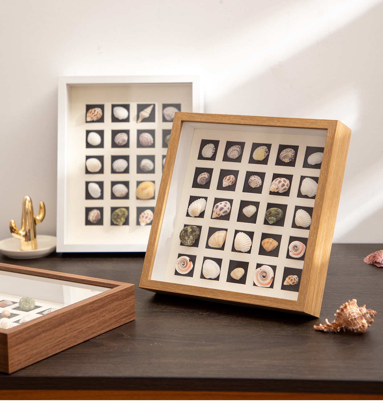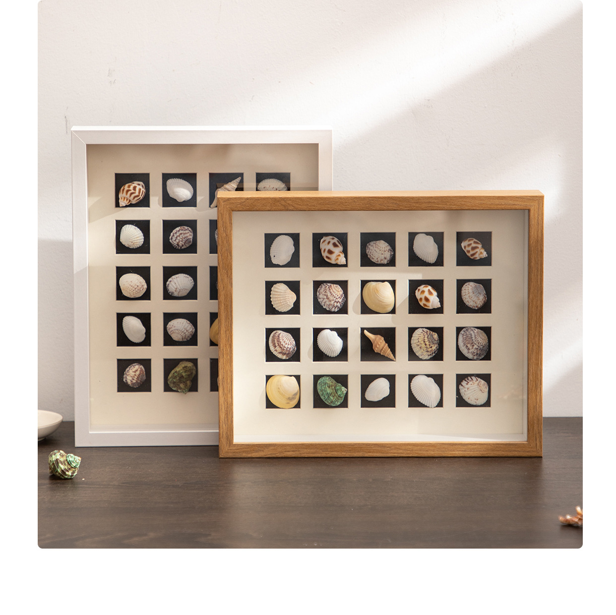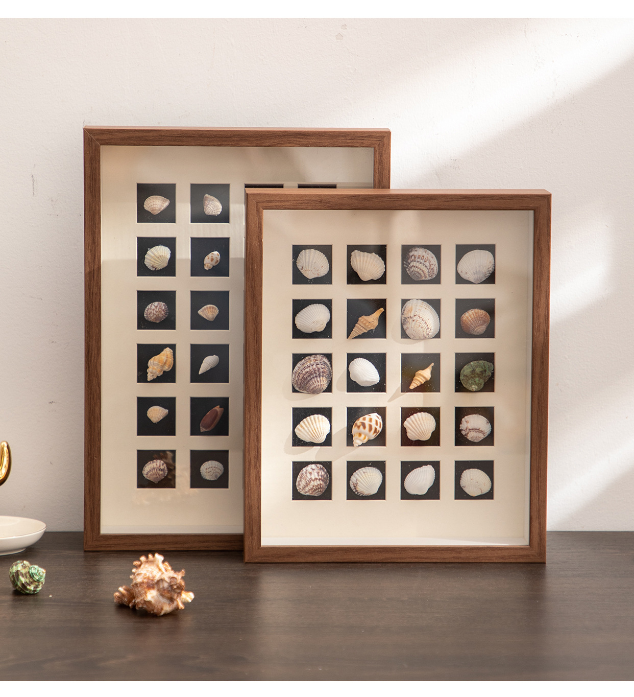 北欧中空立体相框宫格卡纸diy手工贝壳小海螺种子干花标本框木质
