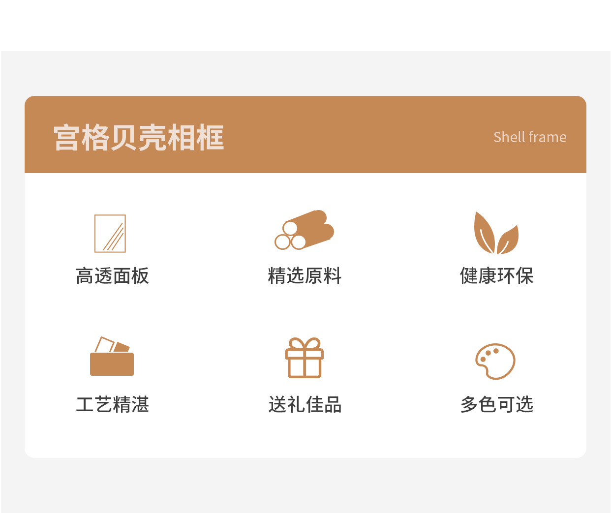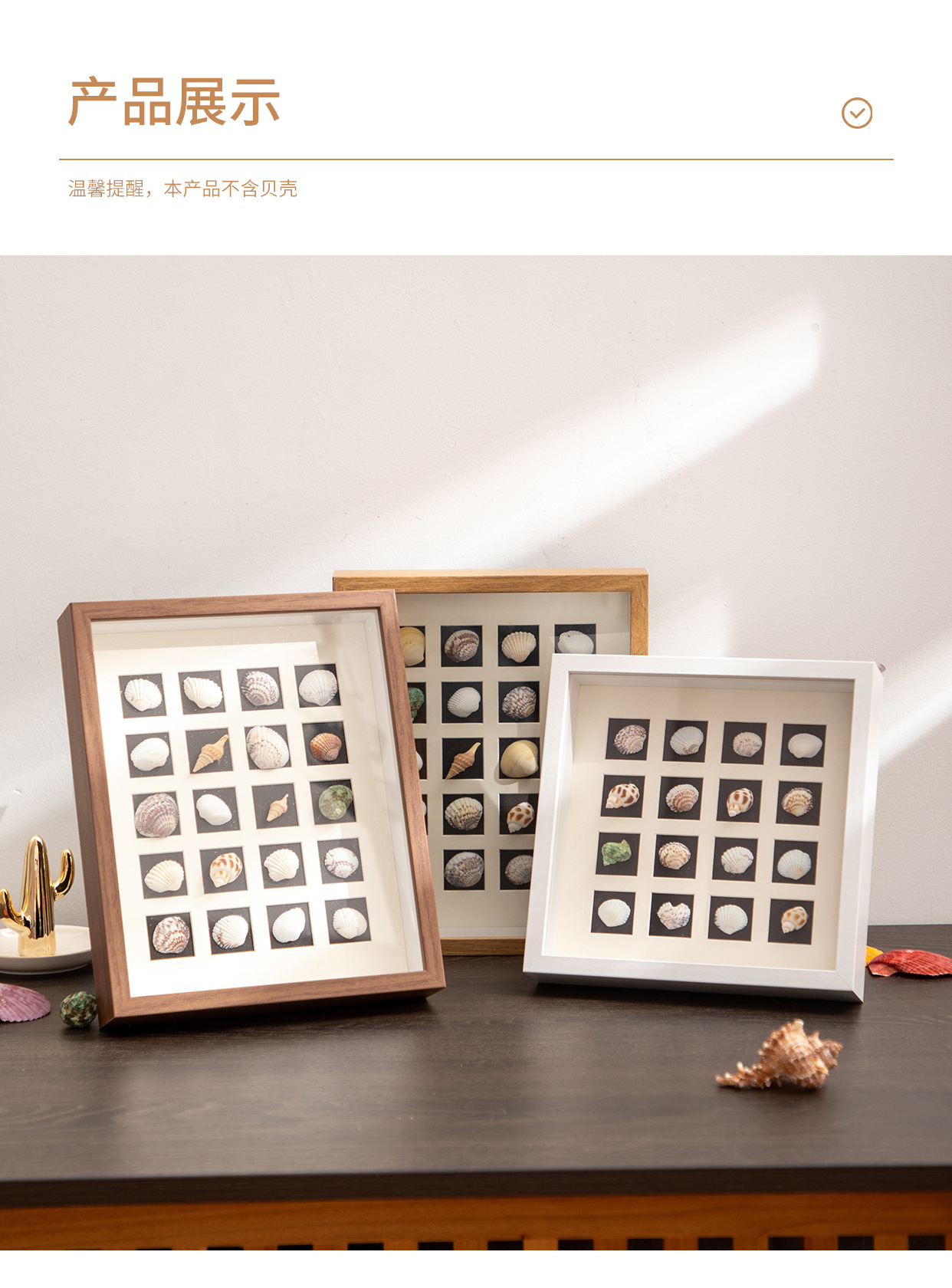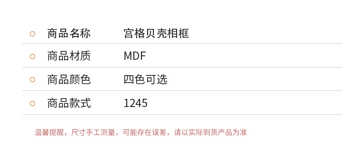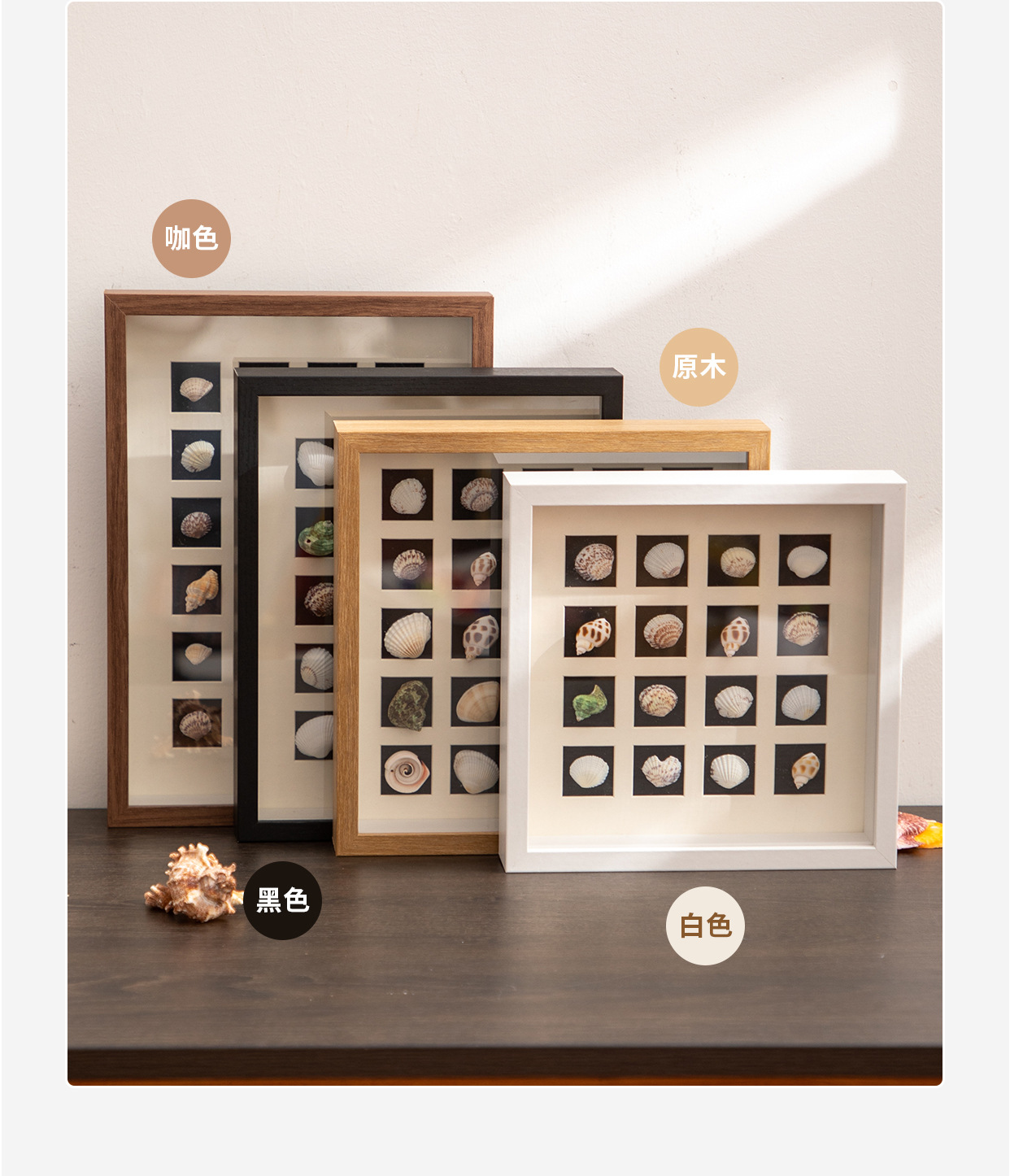 内框尺寸 原木色中空3cm(贝壳需自备),咖啡色中空3cm(贝壳需自备),黑色中空3cm(贝壳需自备),白色中空3cm(贝壳需自备)