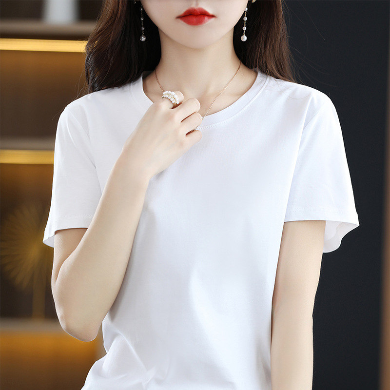 Tシャツレディースラウンドネック2025夏新作半袖スリム薄手無地五分袖トップ