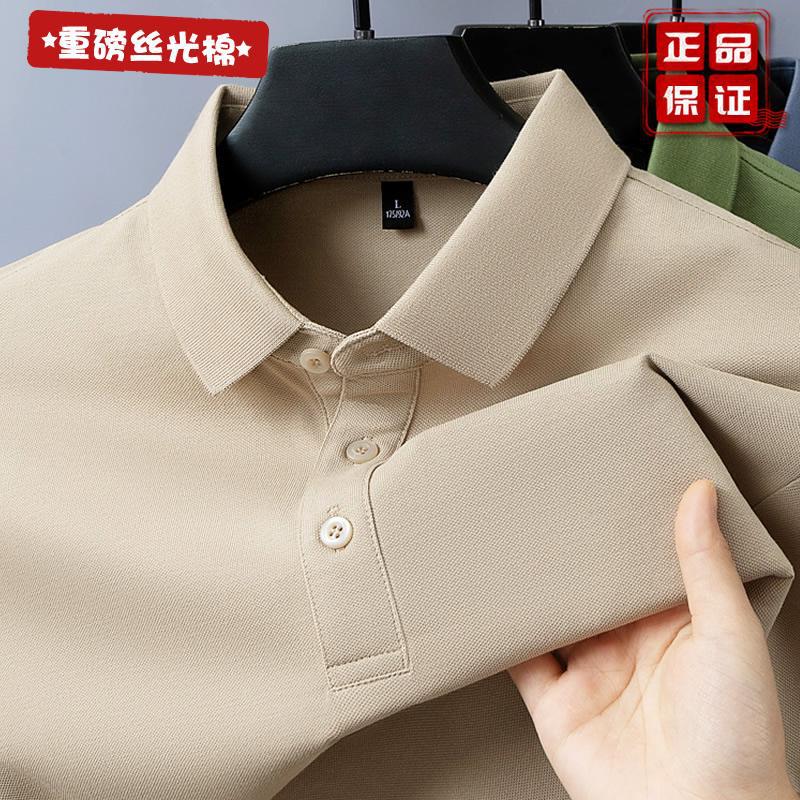 夏の新スタイルアイスシルクラペルヘビーピケシルケットコットンポロシャツビジネスカジュアル無地半袖メンズファーザー服