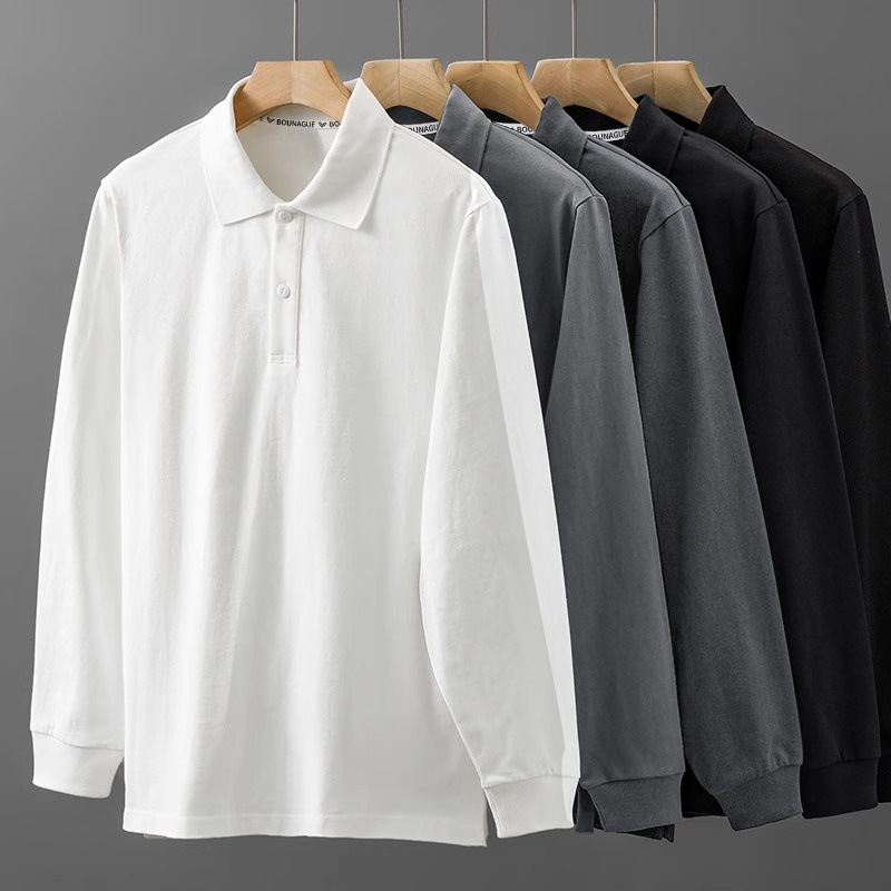 重磅纯棉POLO衫男士长袖春秋季新款纯色打底衫休闲宽松翻领卫衣男