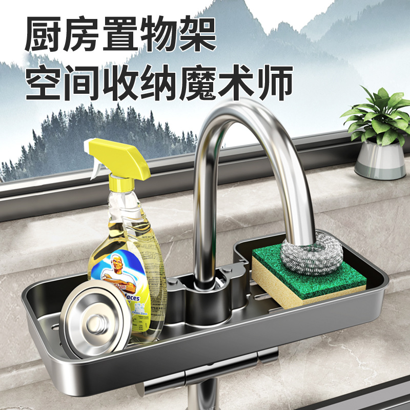厨房浴室防潮置物架抹布收纳沥水架免打孔家用水龙头多功能海绵架