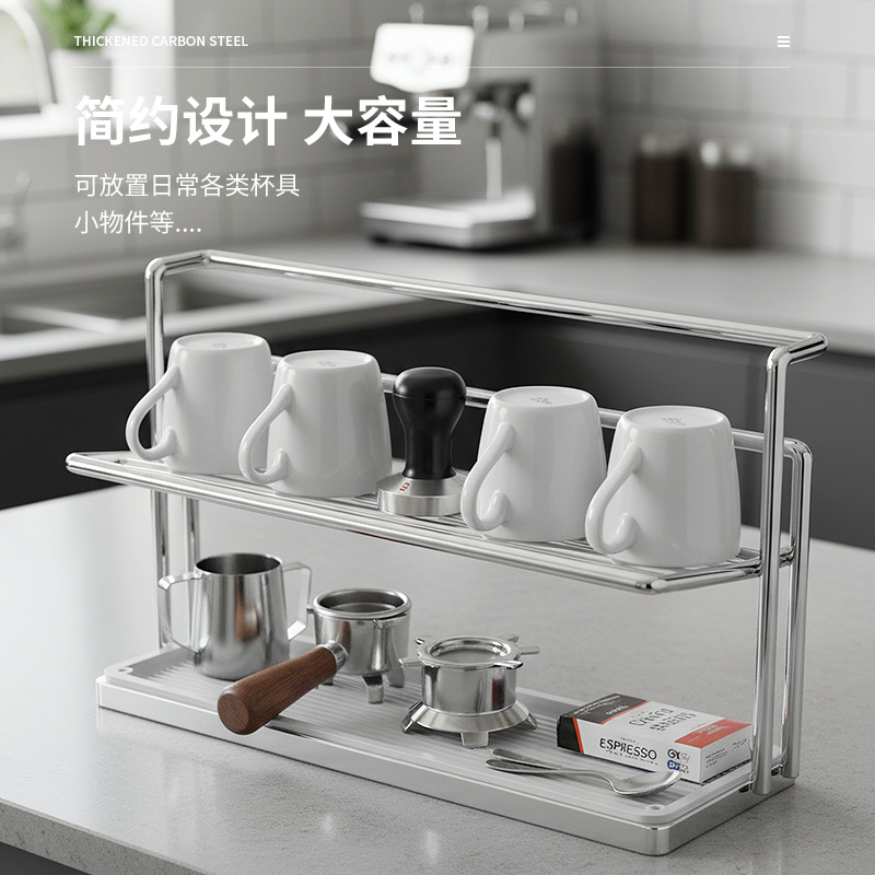跨境不锈钢玻璃大容量多层杯架沥水家用多功能厨房收纳置物架批发