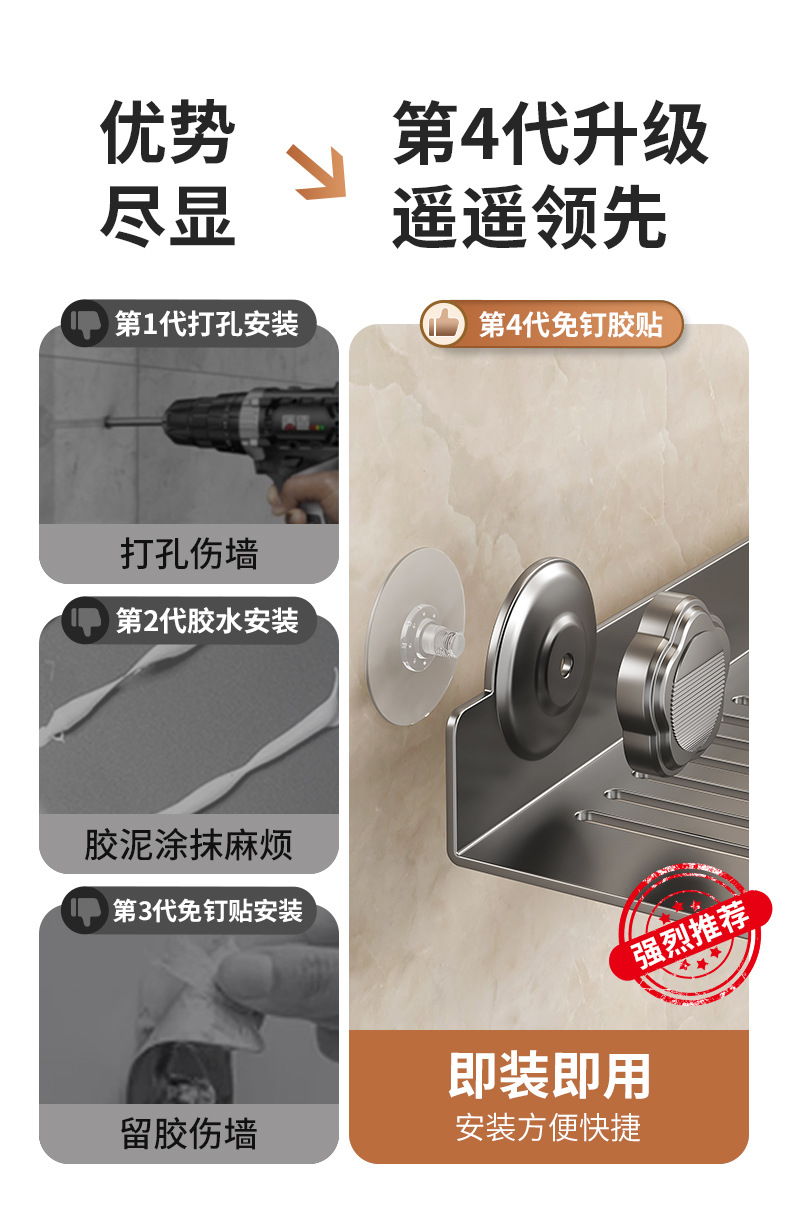 2025年に国境を越えた新しい浴室トイレの回転棚に釘を貼ることなく強力な荷重を取り付けて洗浄するのが便利です