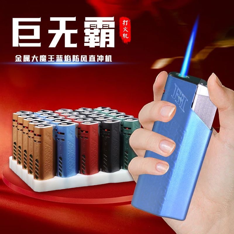 网红新款金属蓝焰国潮直冲打火机充气防风耐用批发超市家用个性