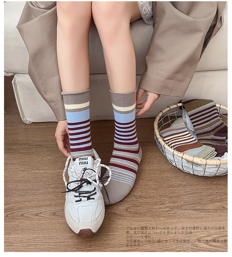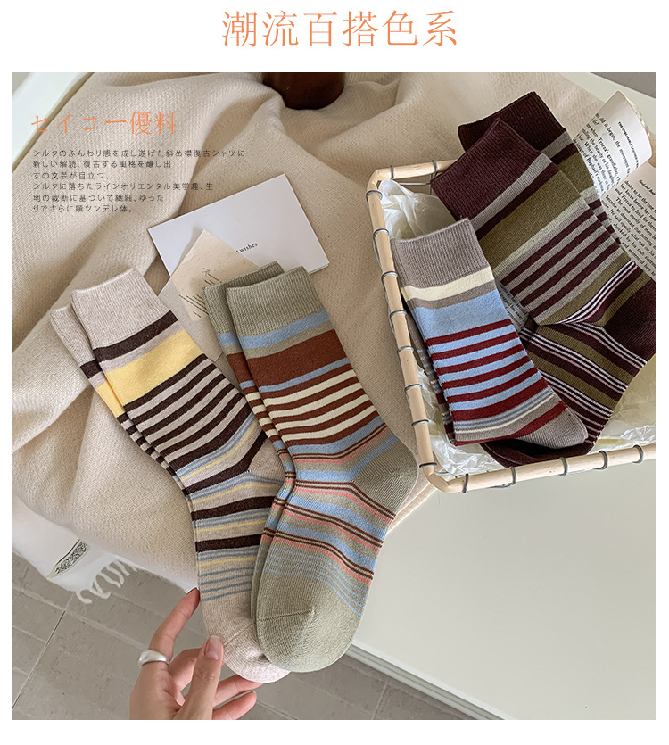 2022秋の新型靴下の女性ネットの赤いラベルの色合わせの縦縞の中の筒の靴下は明らかにやせています。