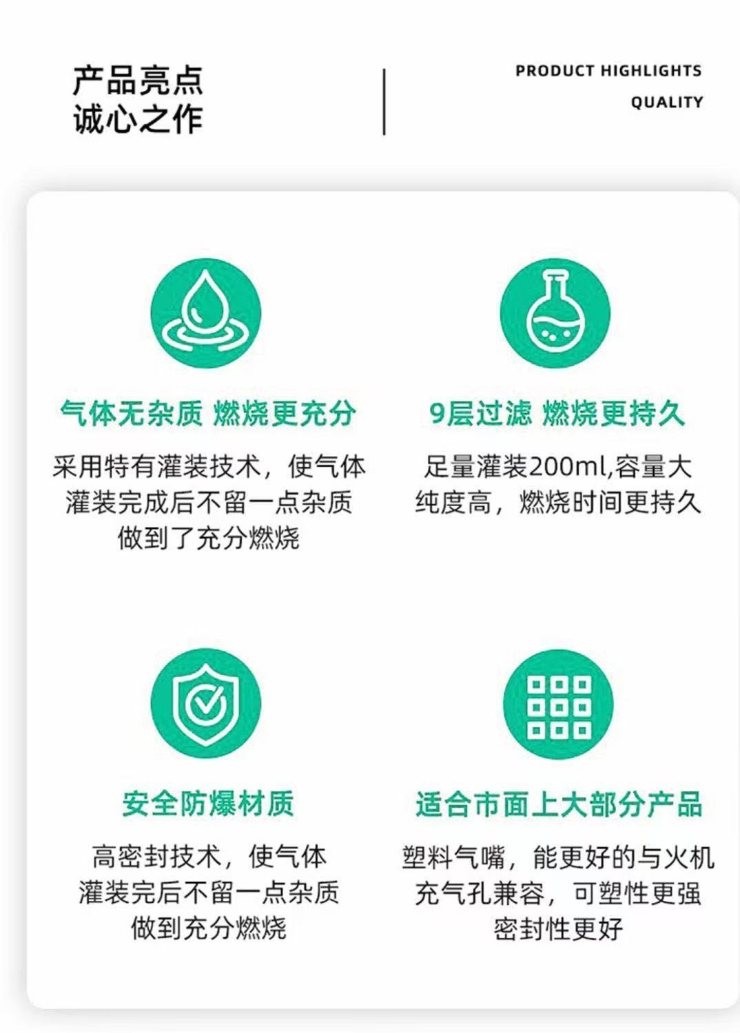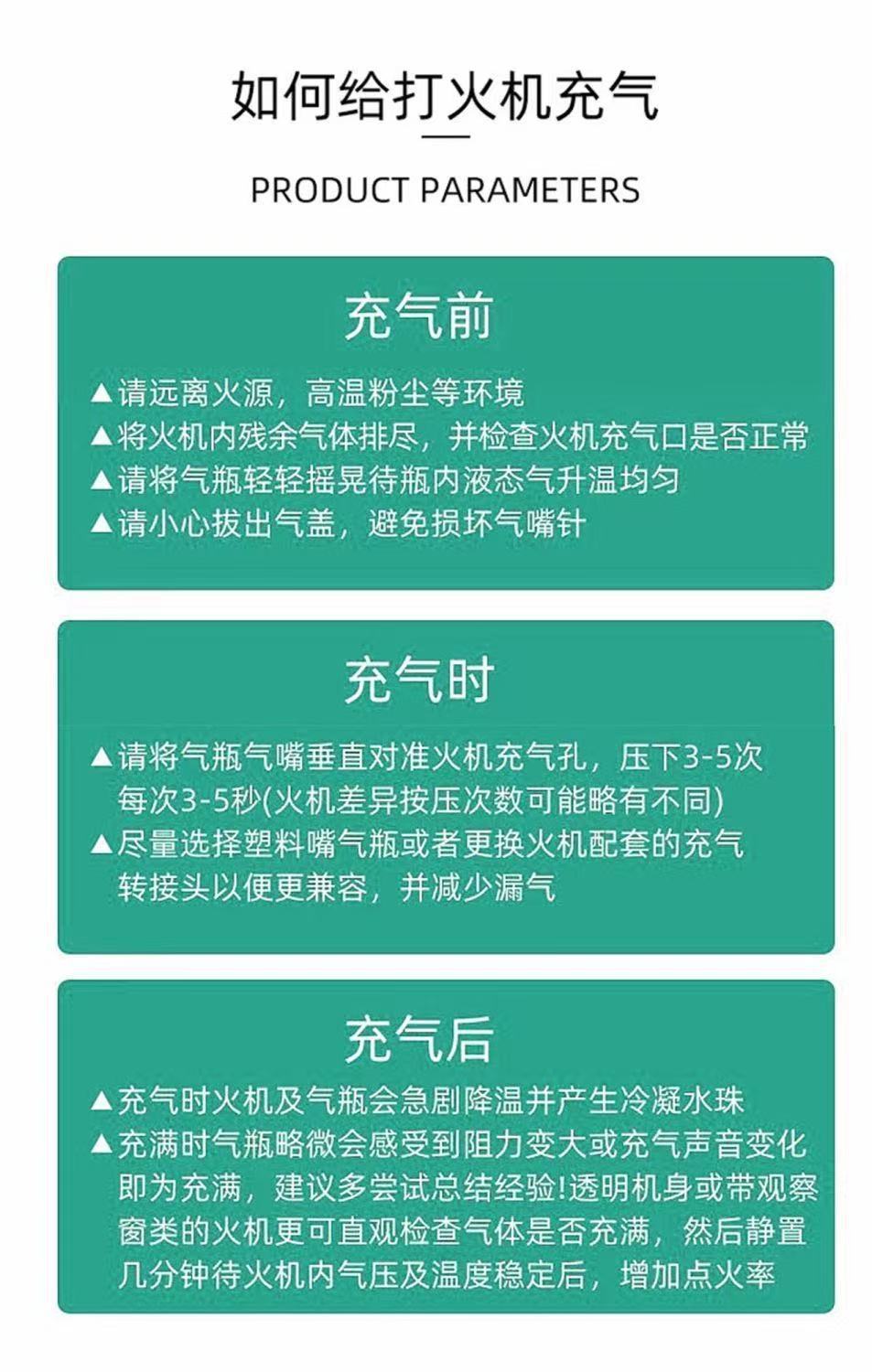 高纯度高端防风打火机充气体绿瓶丁烷油气罐直冲通用型打火机耐用