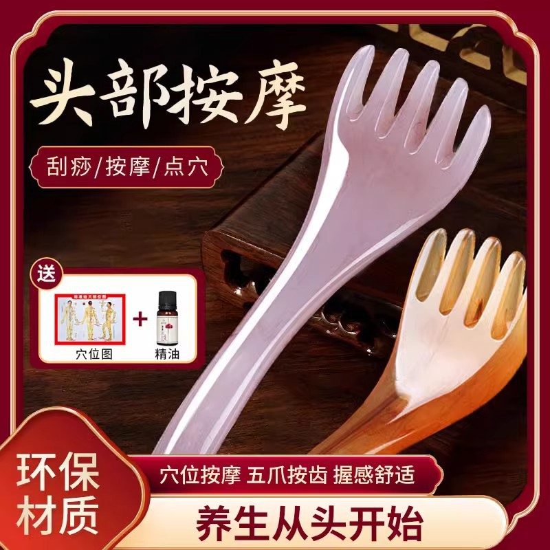 五爪ヘッドマッサージコーム、樹脂製頭皮毛包疏通コーム、牛角刮痧板、経絡コーム、五指梳き療法