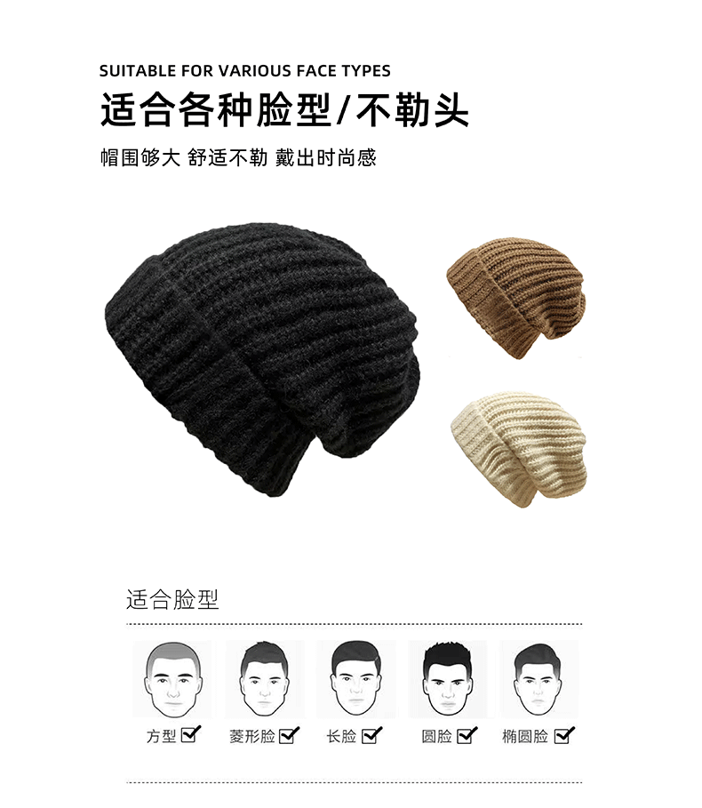 韩系百搭针织堆堆帽冬季保暖护耳套头毛线帽大头围显脸小时尚如意