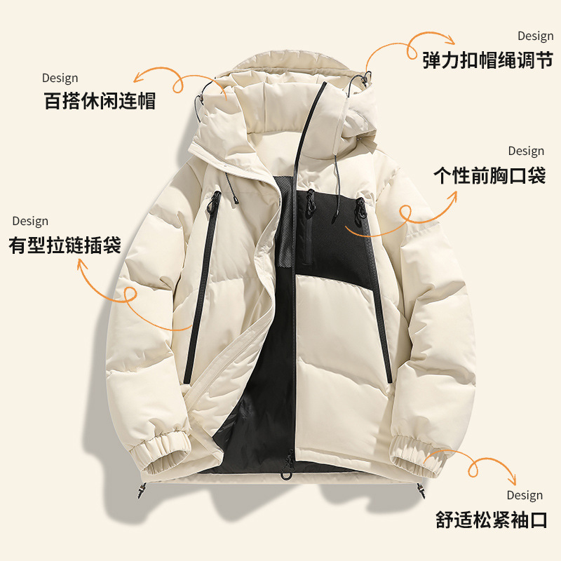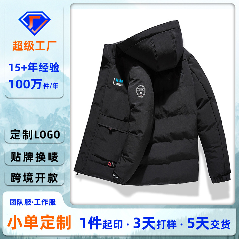 定制LOGO新款男士棉服连帽工装短款潮牌休闲帅气保暖外套冬装夹克