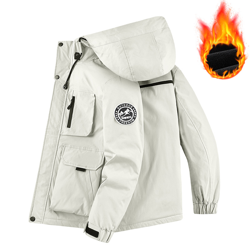 高档奥粒绒棉服连帽工装夹克新款男士短款潮牌休闲秋冬季保暖外套