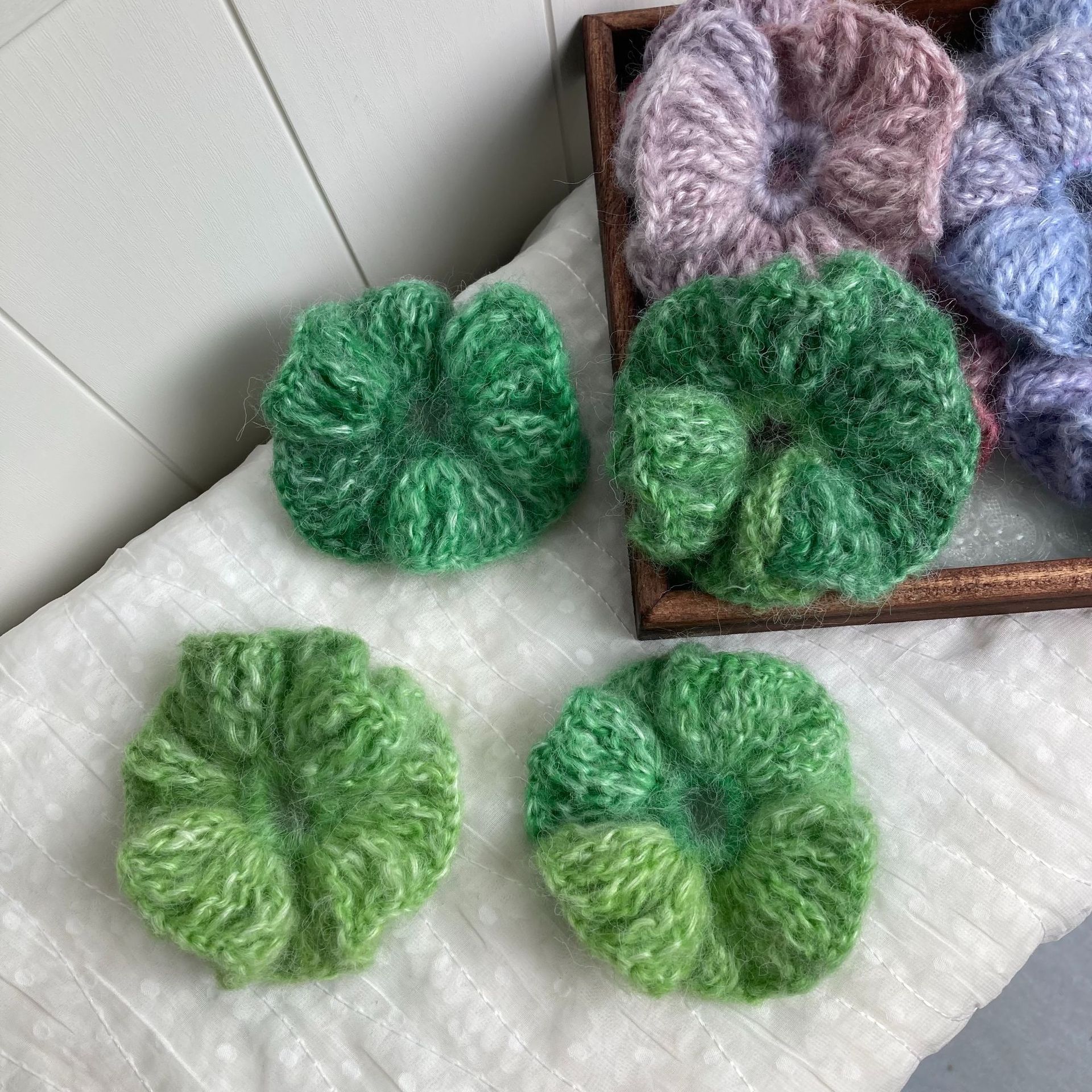 グラデーション色の毛糸ヘアリング手作りのかぎ針の髪紐秋冬の新型の小さい花の髪飾りが可愛いです。