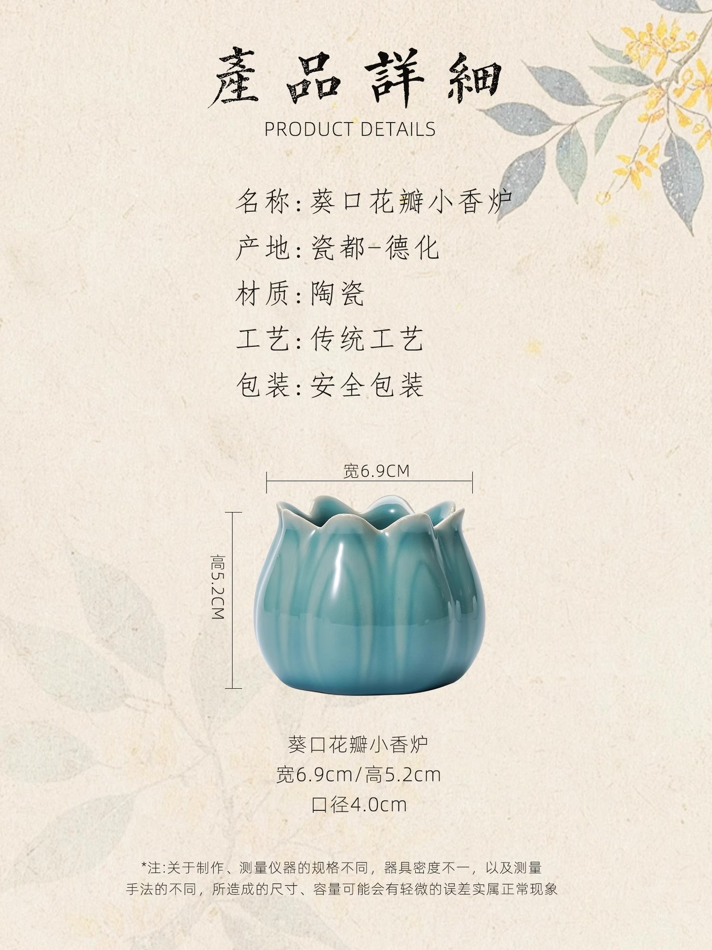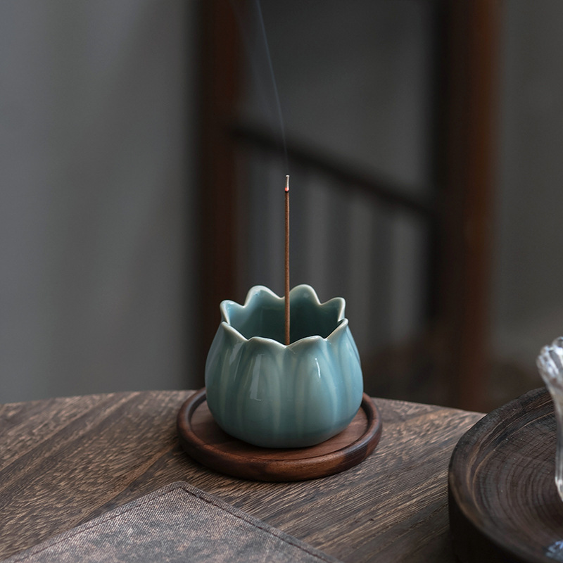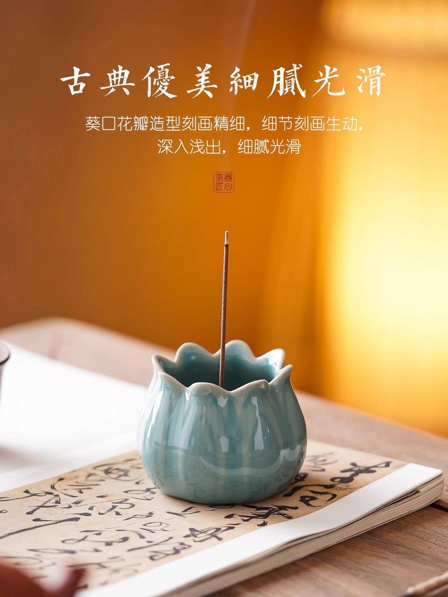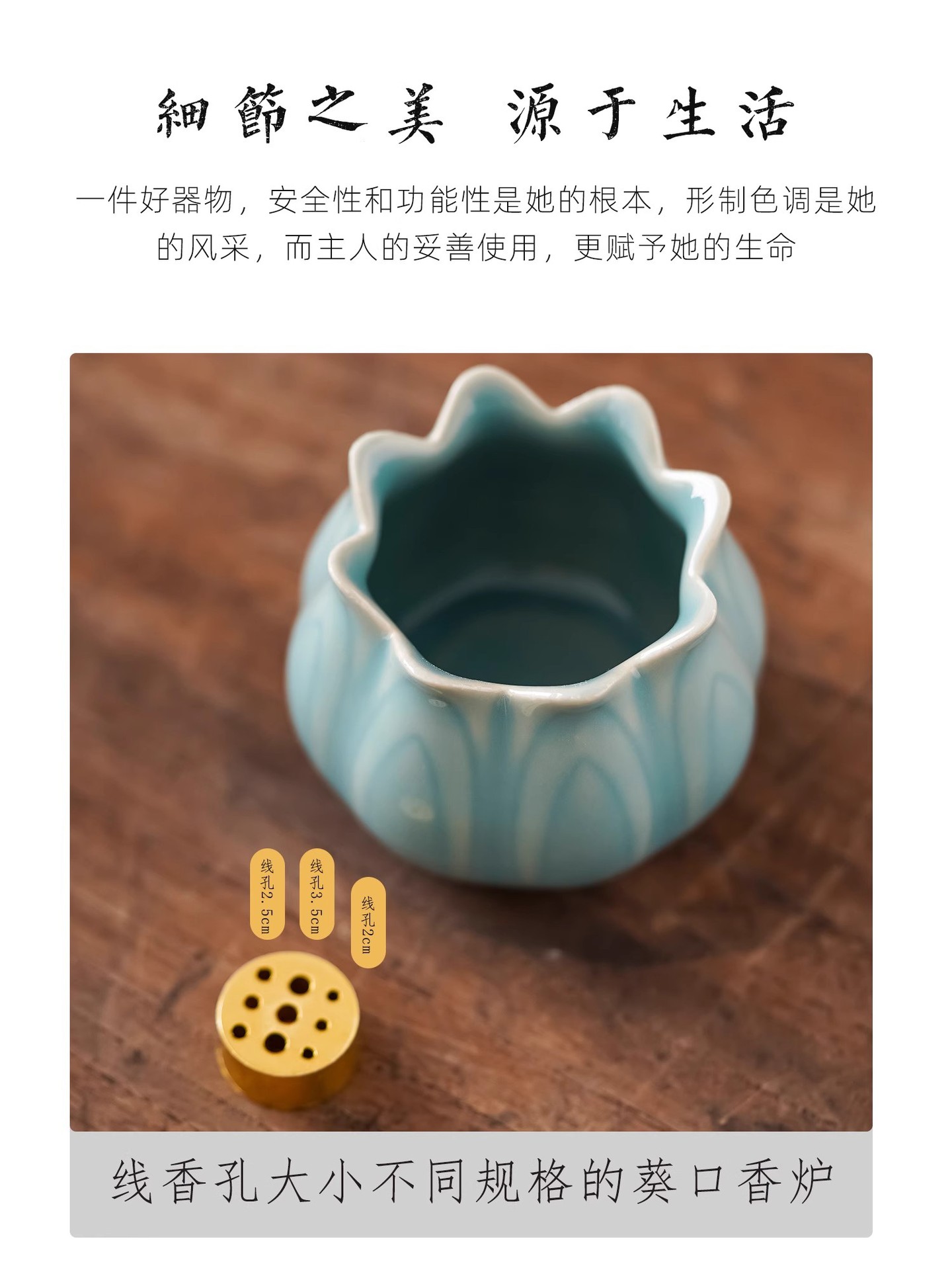 青瓷葵口小香炉九孔线香插香座檀沉香室内茶桌香薰炉创意陶瓷摆件