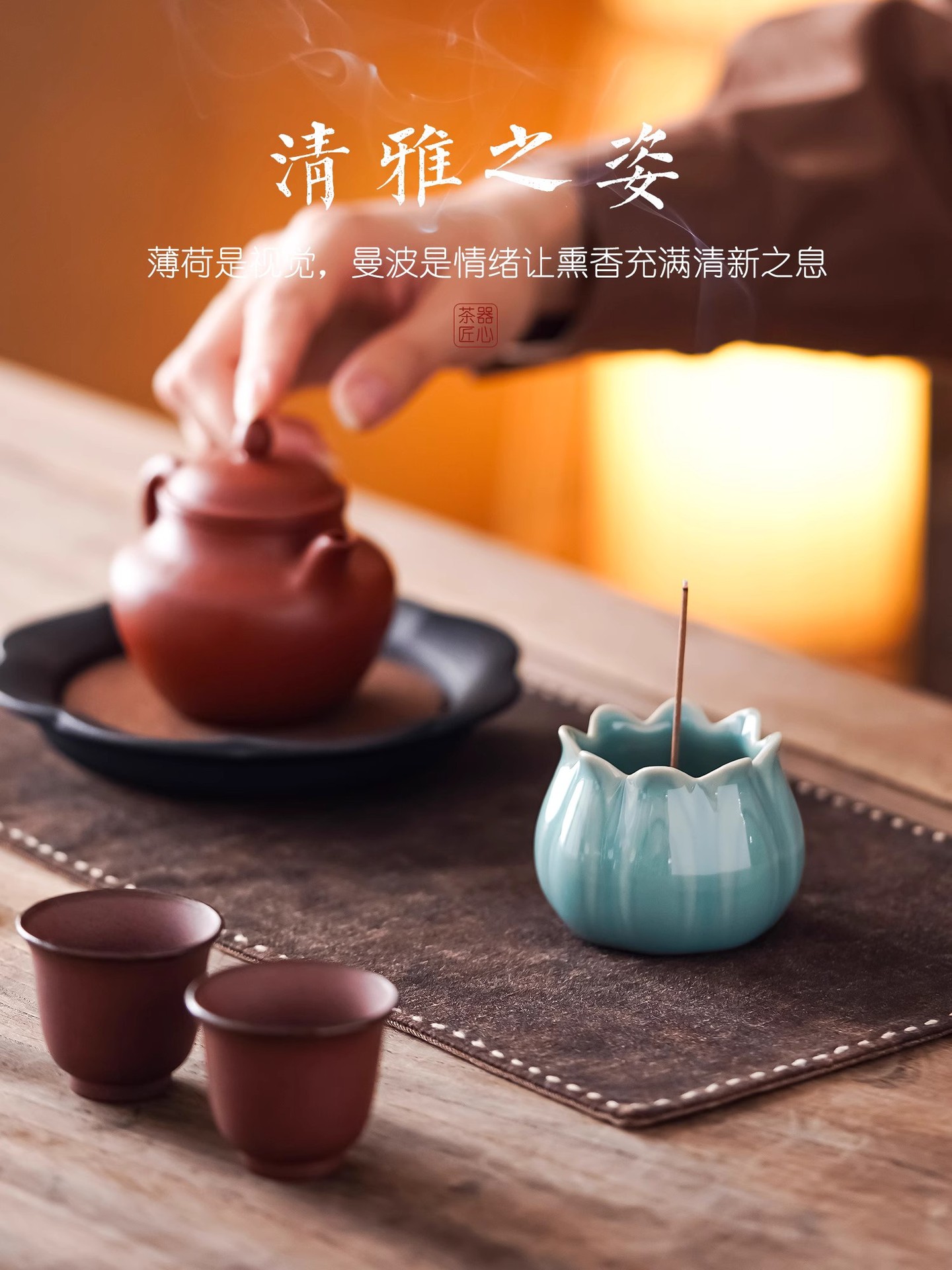 皓澜越窑青瓷创意香插小香炉茶室陶瓷香托线香插香座桌面香薰炉