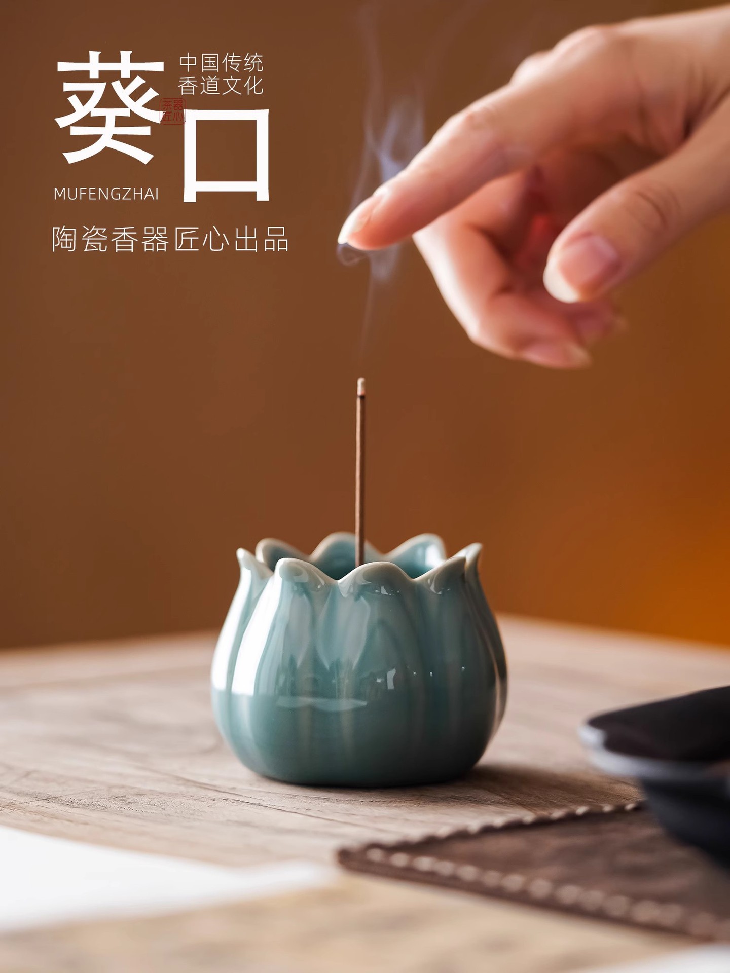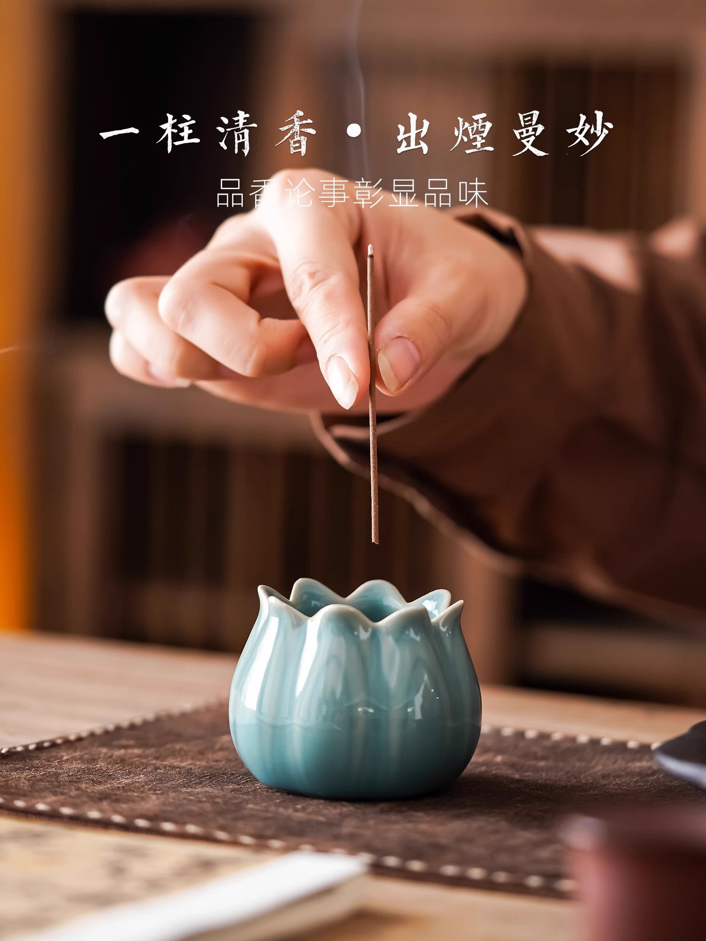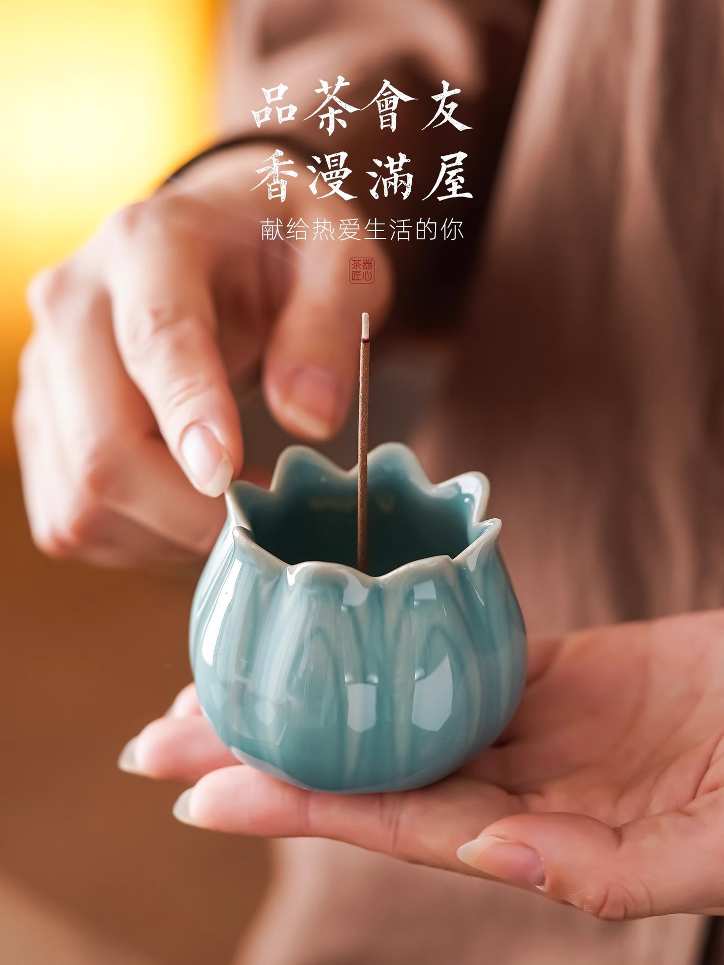 中国式シンプル如意陶磁器線香炉家庭用沈香ホノルル線香挿し書斎茶道デスクトップ創意置物
