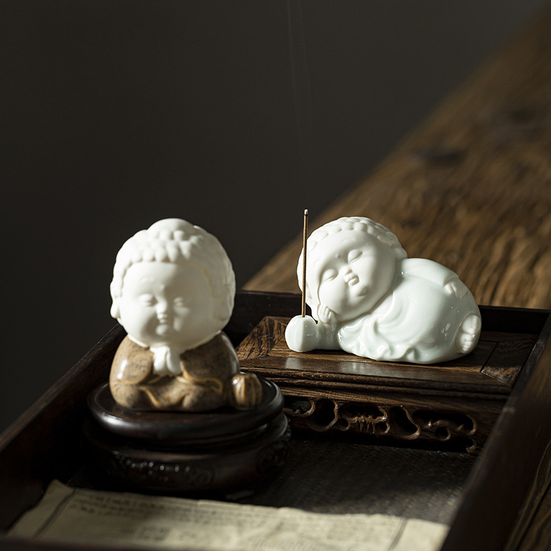 禅意の小さい仏の線香は青磁のかわいい香道の置物の家庭の室内の沈香のホノルルの香炉の香座の香托を挿し込みます。