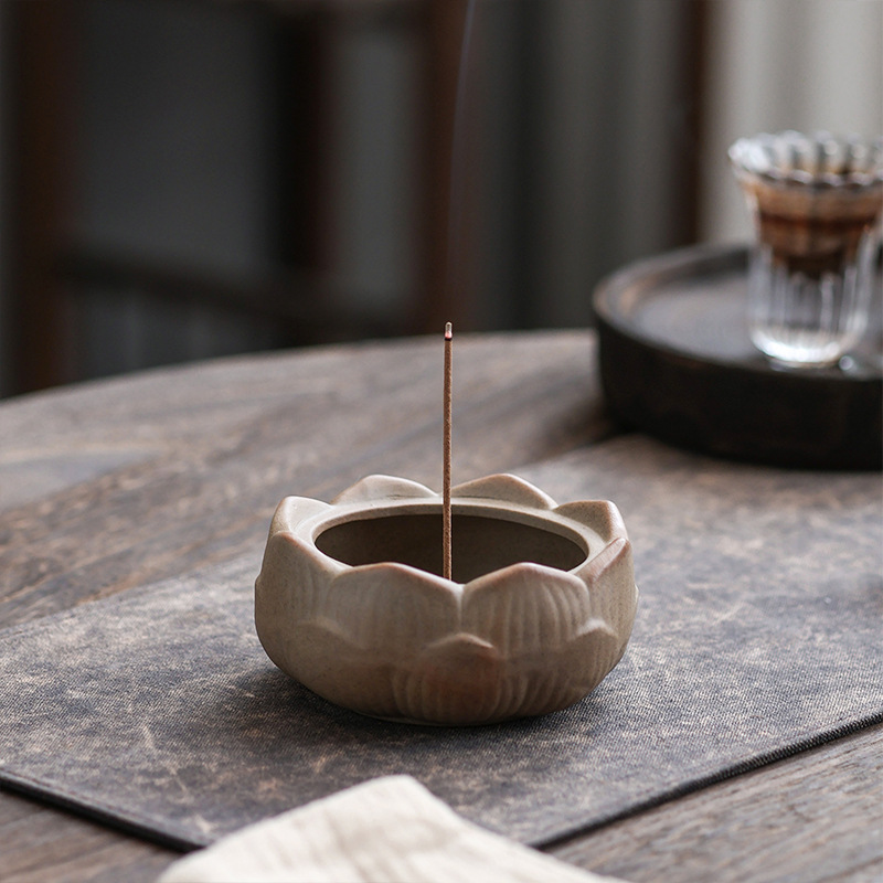 粗陶莲花接灰座家用线香炉陶瓷供奉香盘香座室内上香简约佛香炉具