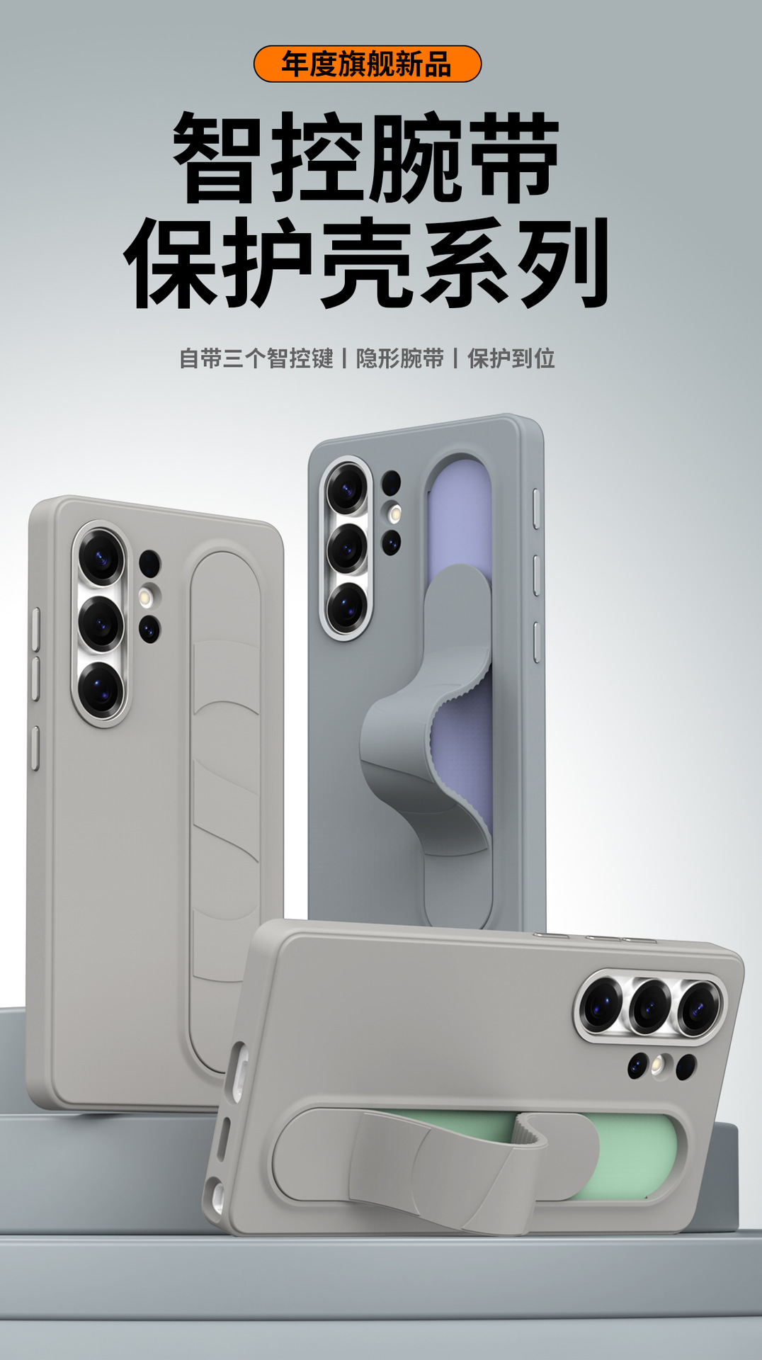 适用三星S25FE手机壳智能按键硅胶腕带S25ultra保护套S26Ultra
