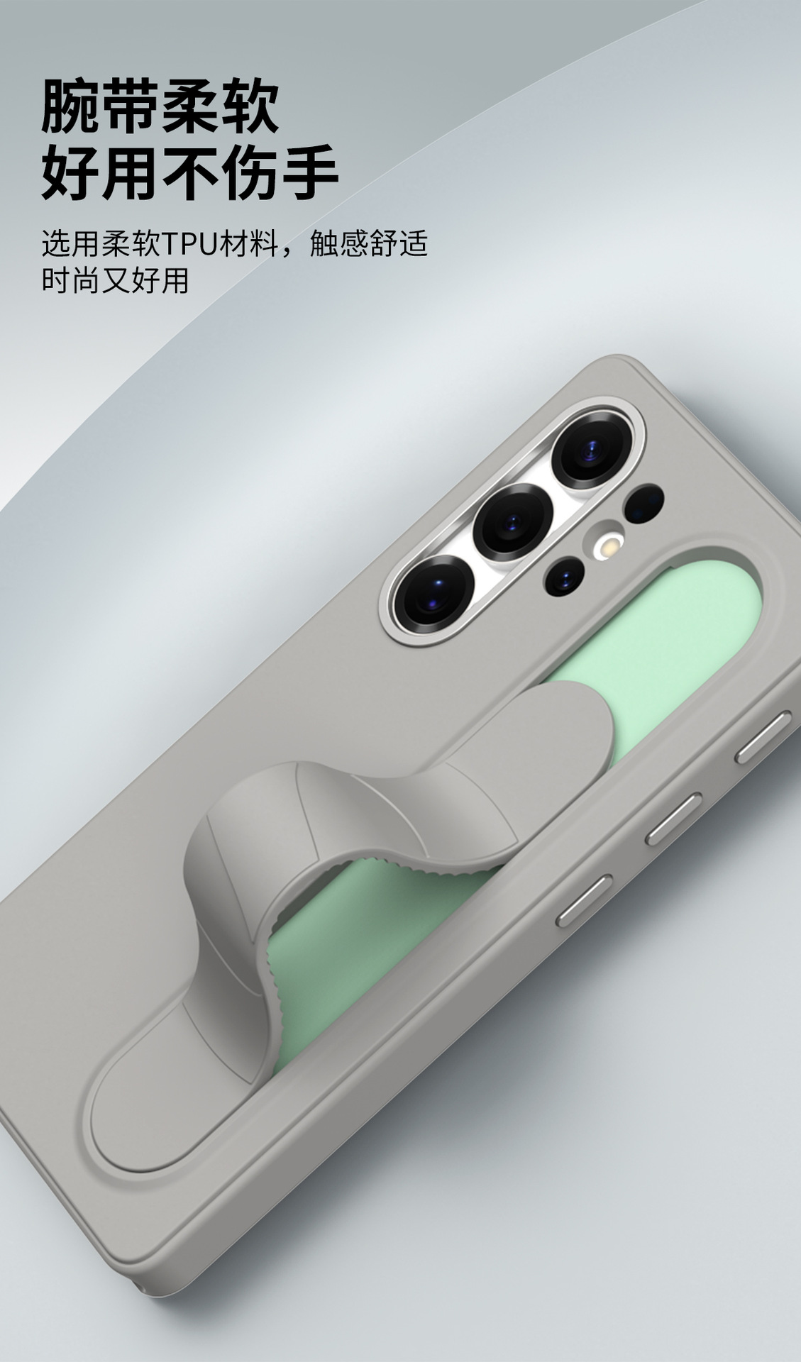 智能按键适用三星s25U手机壳腕带磨砂s24+全包保护套腕带支架壳