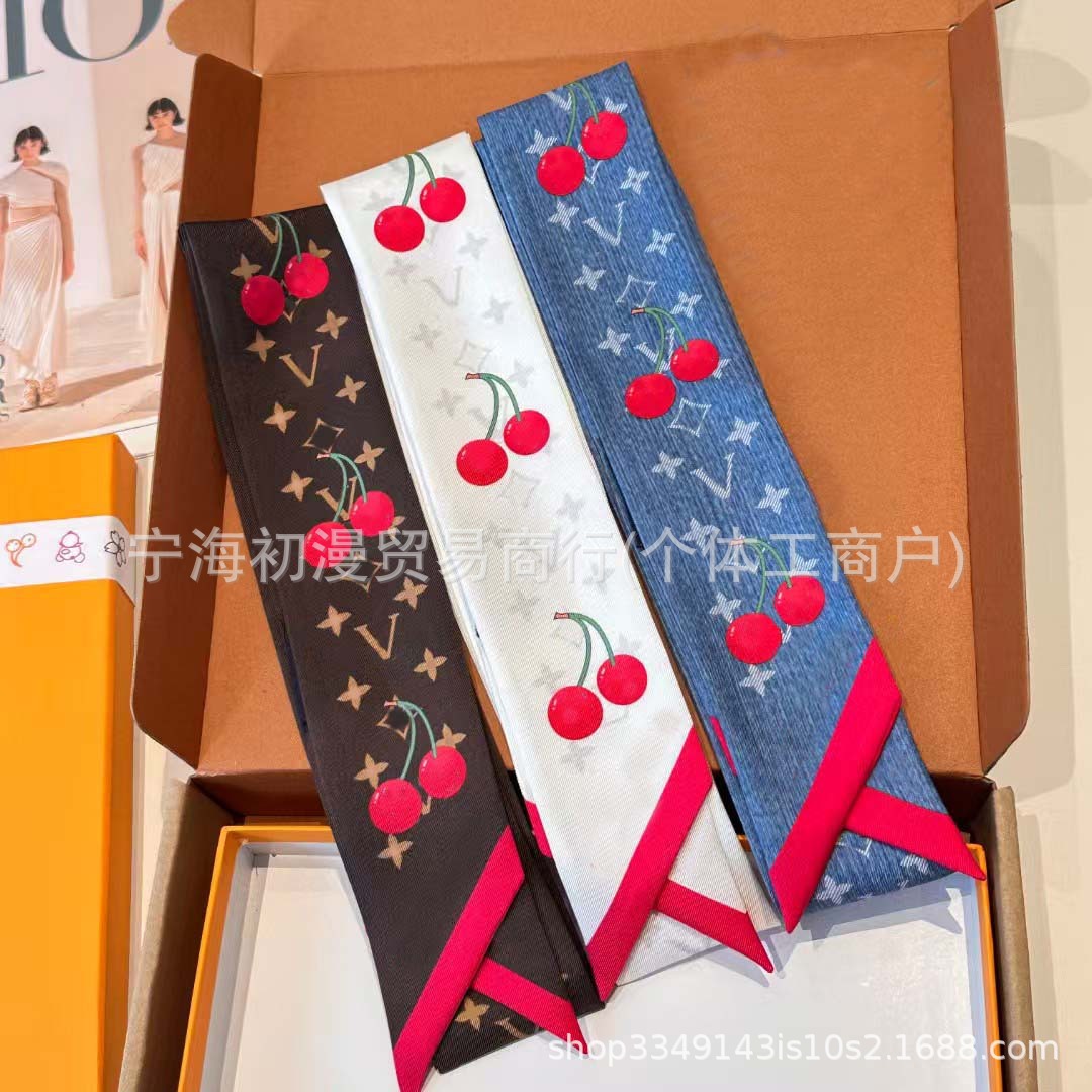 欧陽ナナと同じスタイルのチェリーモチーフのリボン、ヘアバンド、スカーフ、バッグリボン