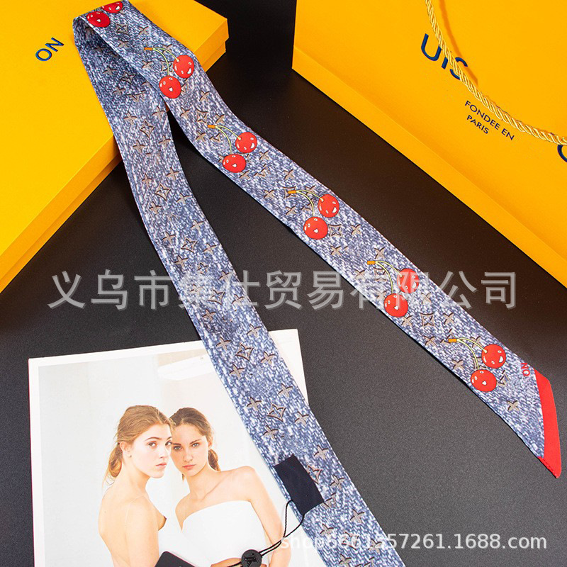 D ハイバージョン 18 ミリメートルシルクスカーフタイリボン細い長いヘアバンド装飾小さなスカーフデニム H