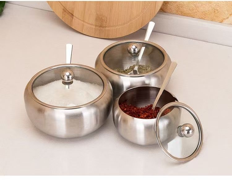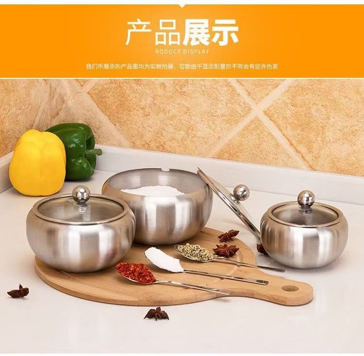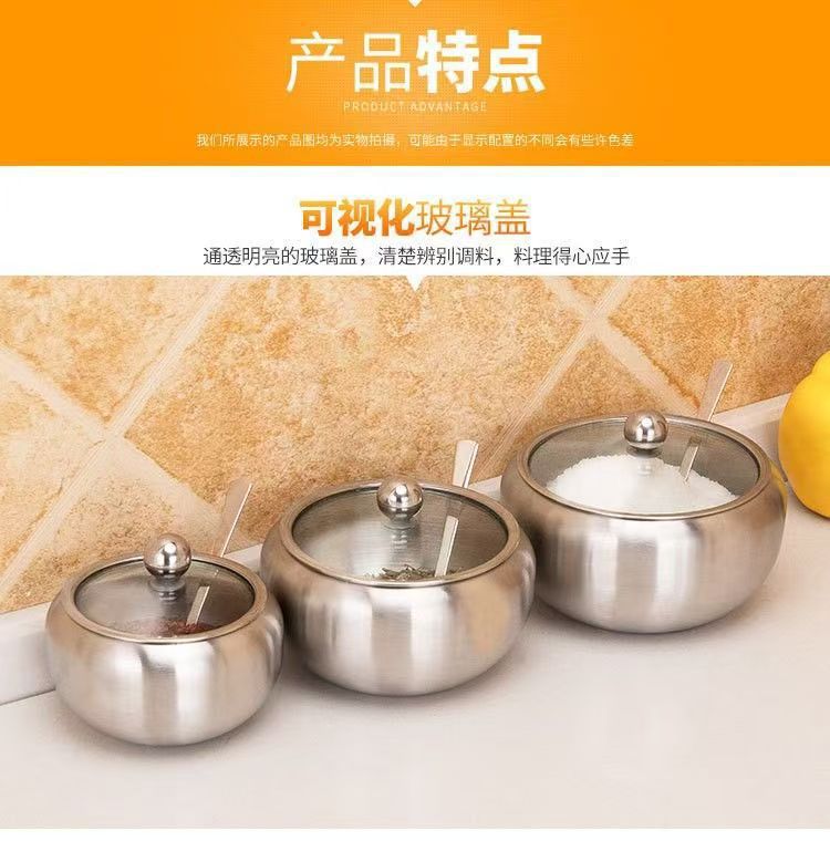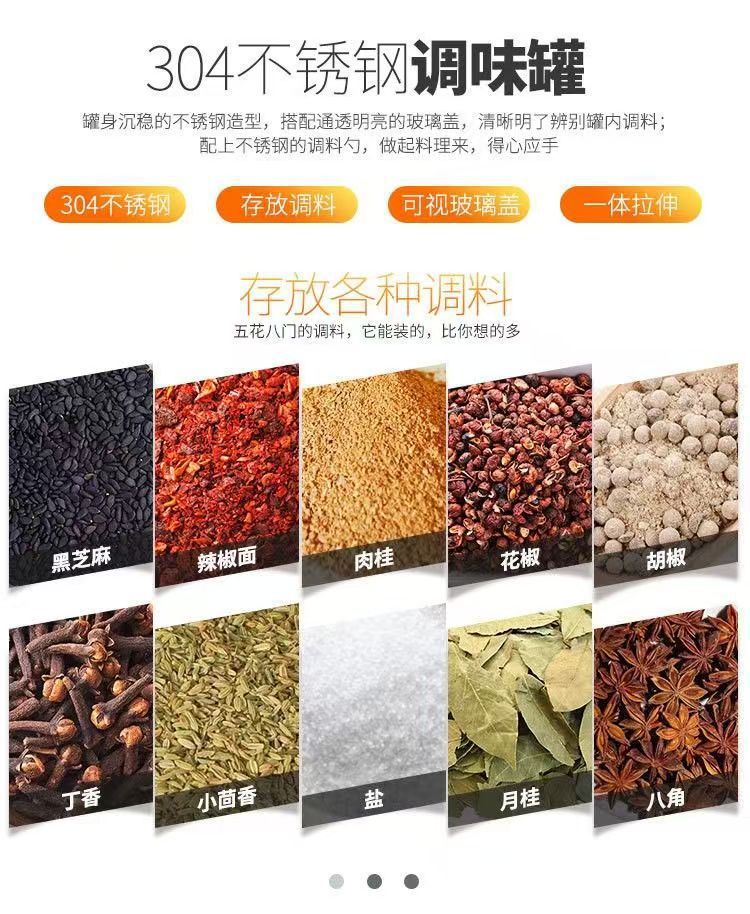 加厚不锈钢调味罐 大容量厨房用品调味料收纳盒 糖罐调料罐套装