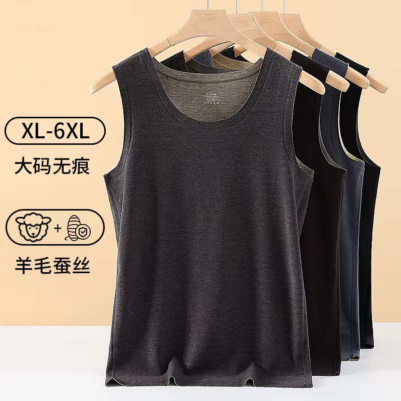 大码德绒保暖背心男羊毛蚕丝秋冬季青年学生内穿打底男士单件上衣