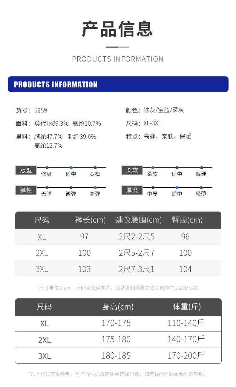 尺码 XL(男100~140斤/女90~120斤),XXL(男135~160斤/女115-130斤),XXXL(男160~190斤/女130~145斤)