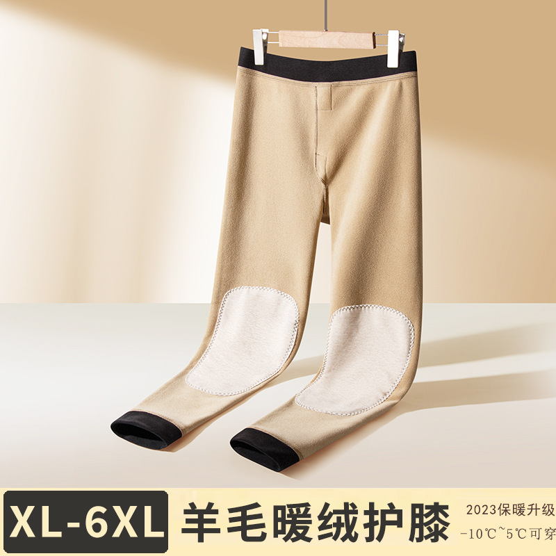 大码保暖裤男冬季加绒厚羊毛护膝修身打底加肥加大男士薄棉裤400g
