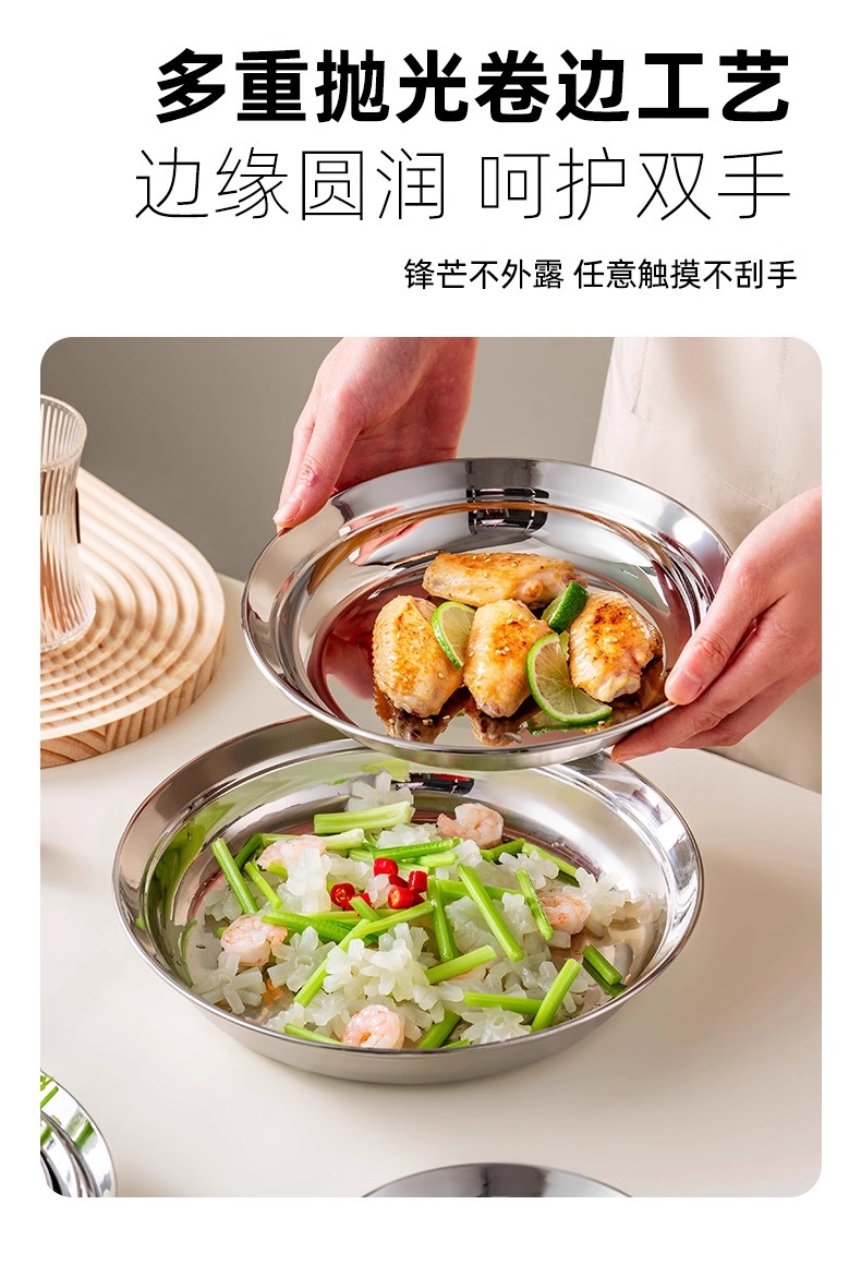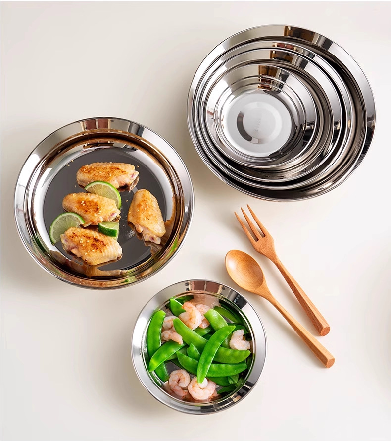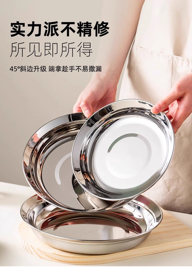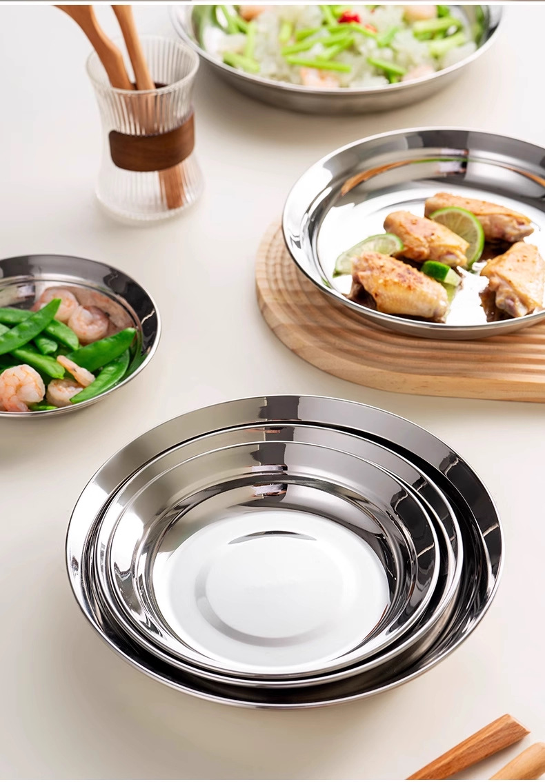 316食品級ステンレス大円皿家庭用浅皿蒸し皿円形トレー鉄皿料理皿朝食皿