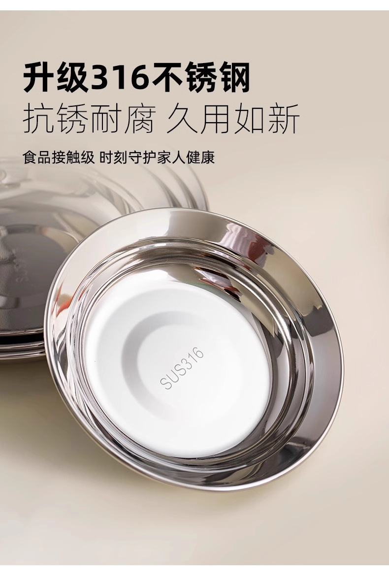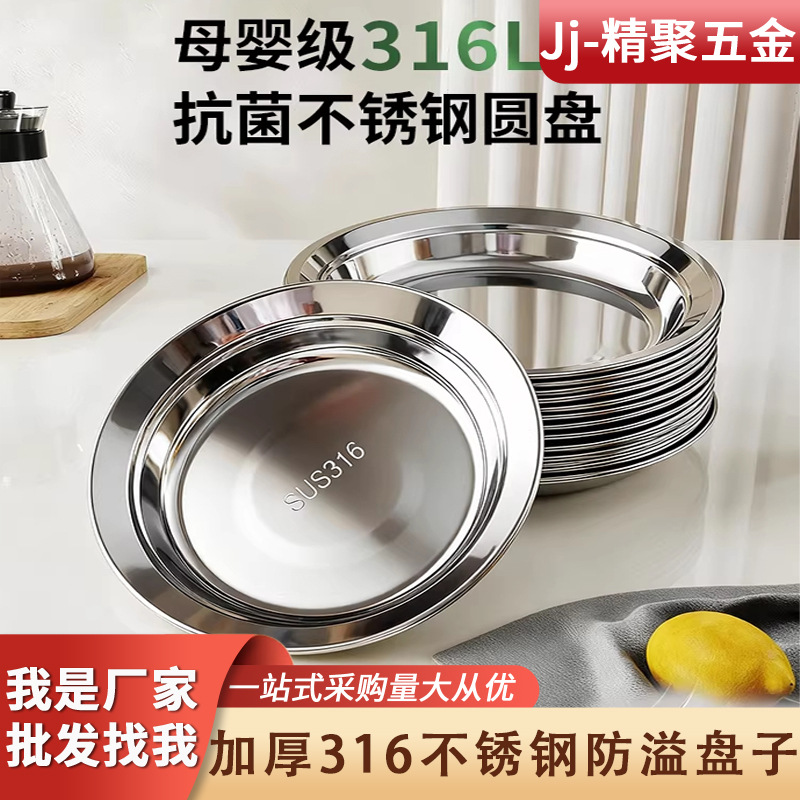 加厚316不锈钢盘子家用菜盘碟子商用餐饮圆盘餐盘食品级蒸盘餐具