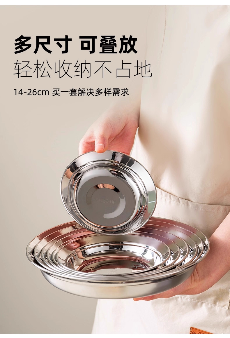 跨境亚马逊316不锈钢盘家用备菜盘圆盘食品级盘子果盘餐盘餐具菜
