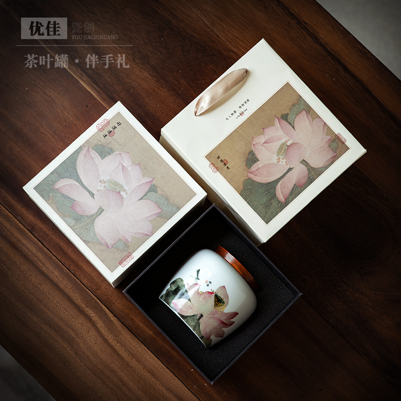 创意荷花茶叶罐陶瓷茶罐大号红茶绿茶通用茶叶包装密封存茶罐高档