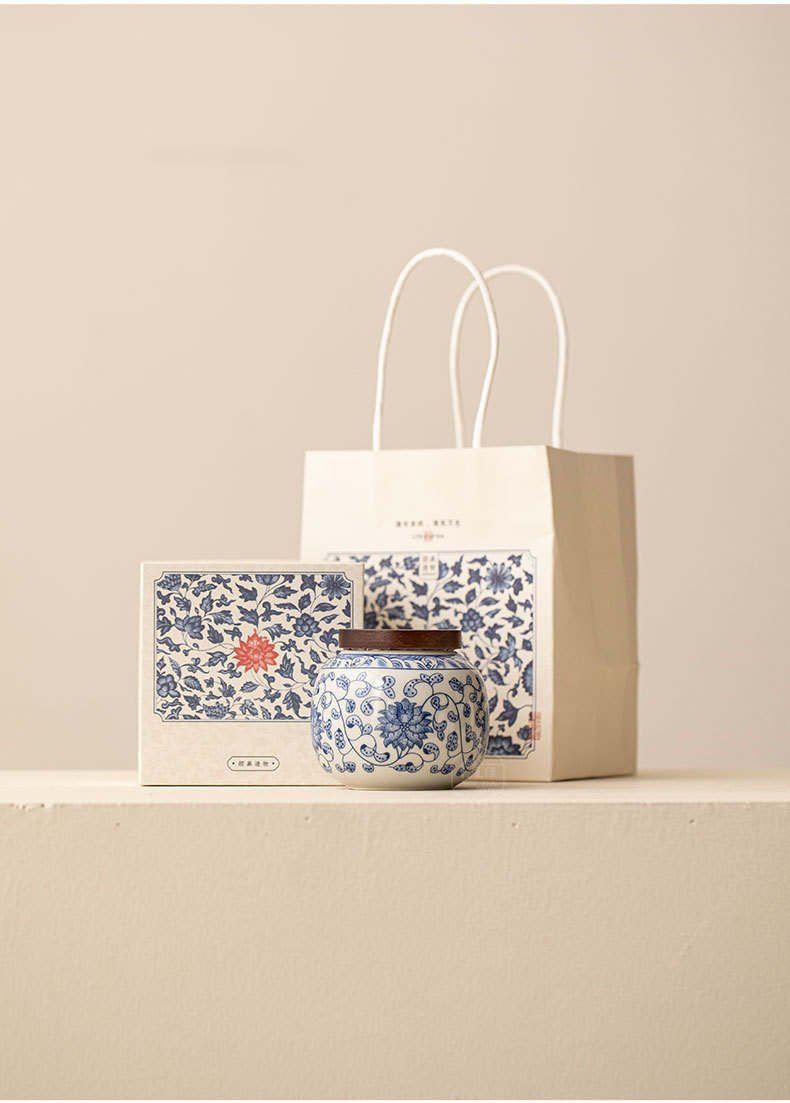 青花瓷茶叶罐密封小罐子缠枝莲迷你陶瓷存茶罐茶叶包装礼盒定制