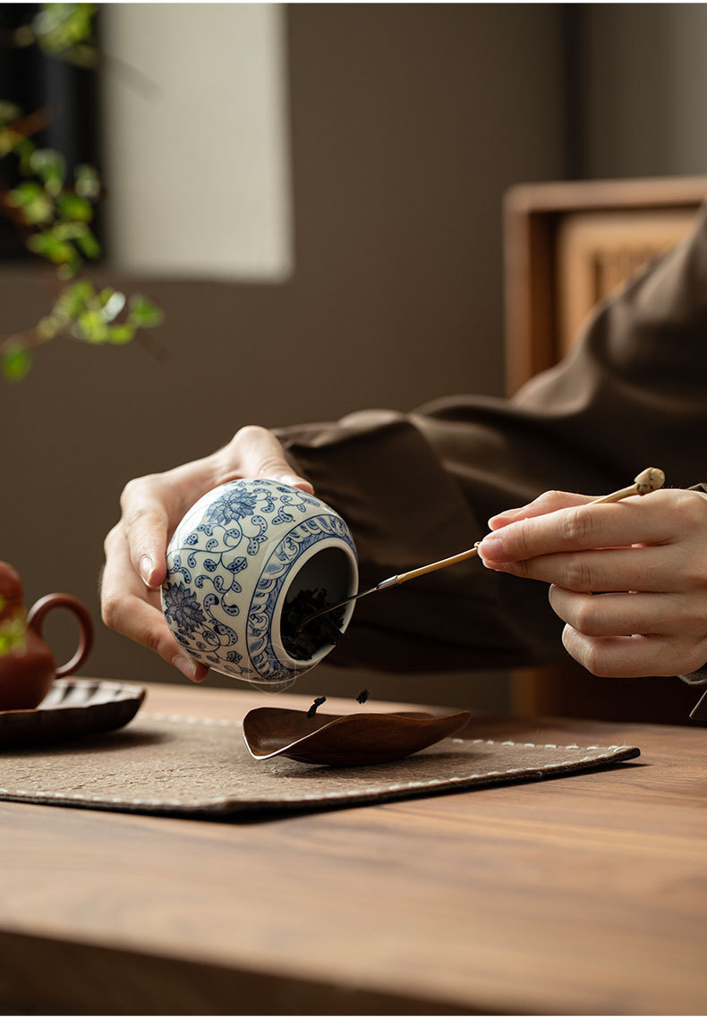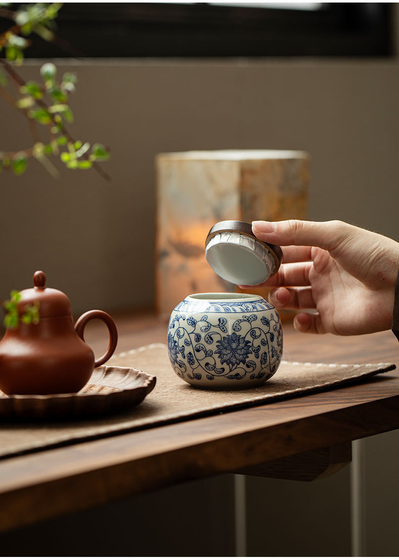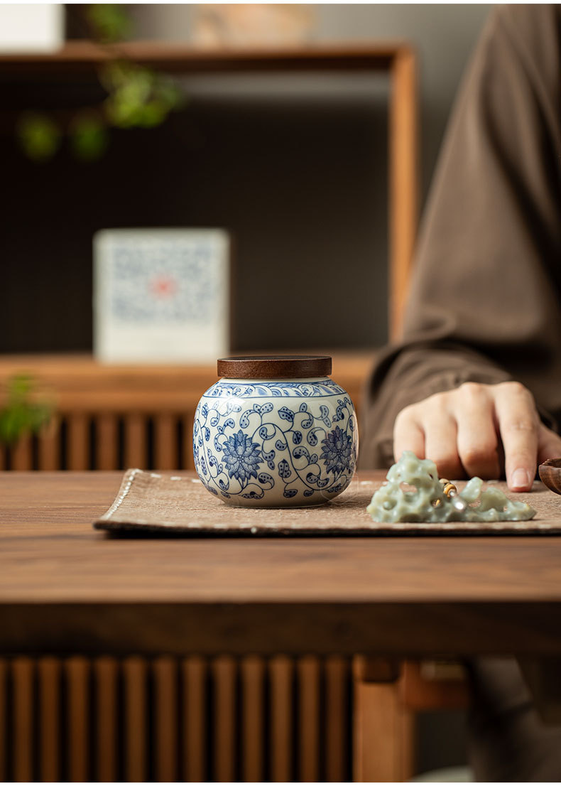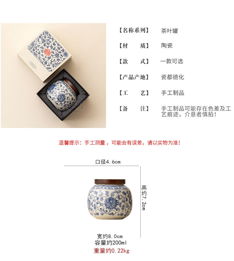 青花手描き陶磁茶叶缶トランペット贮茶密封缶赤茶绿茶包装小缶ミニ様茶缶