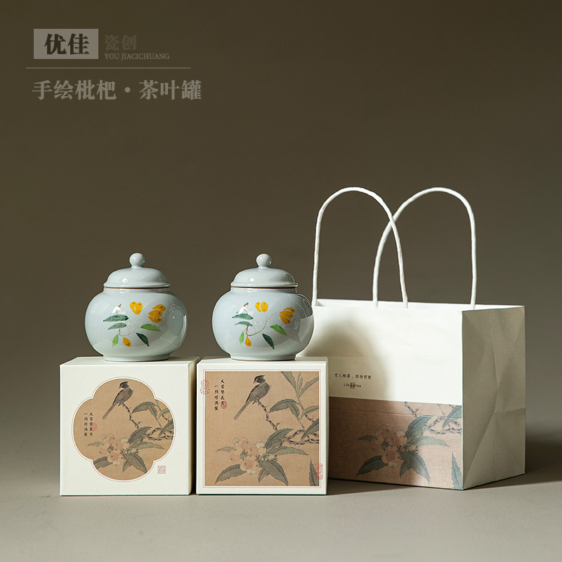 新品陶瓷茶叶罐家用储存罐密封罐小号存茶罐茶仓茶叶包装礼盒空罐