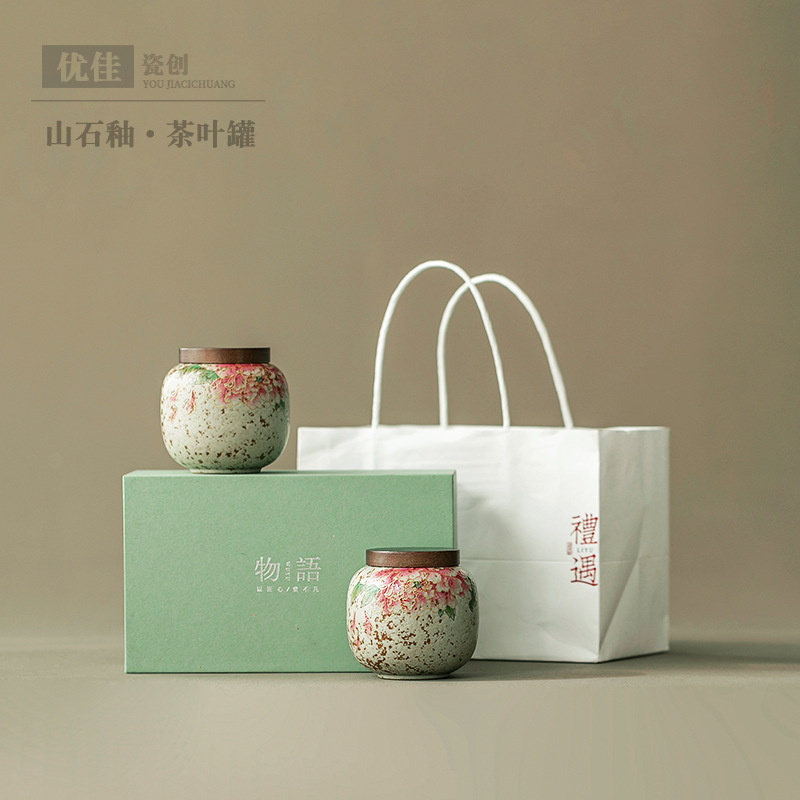 复古陶瓷茶叶罐家用存茶罐密封罐防潮罐小号茶叶包装盒高端伴手礼
