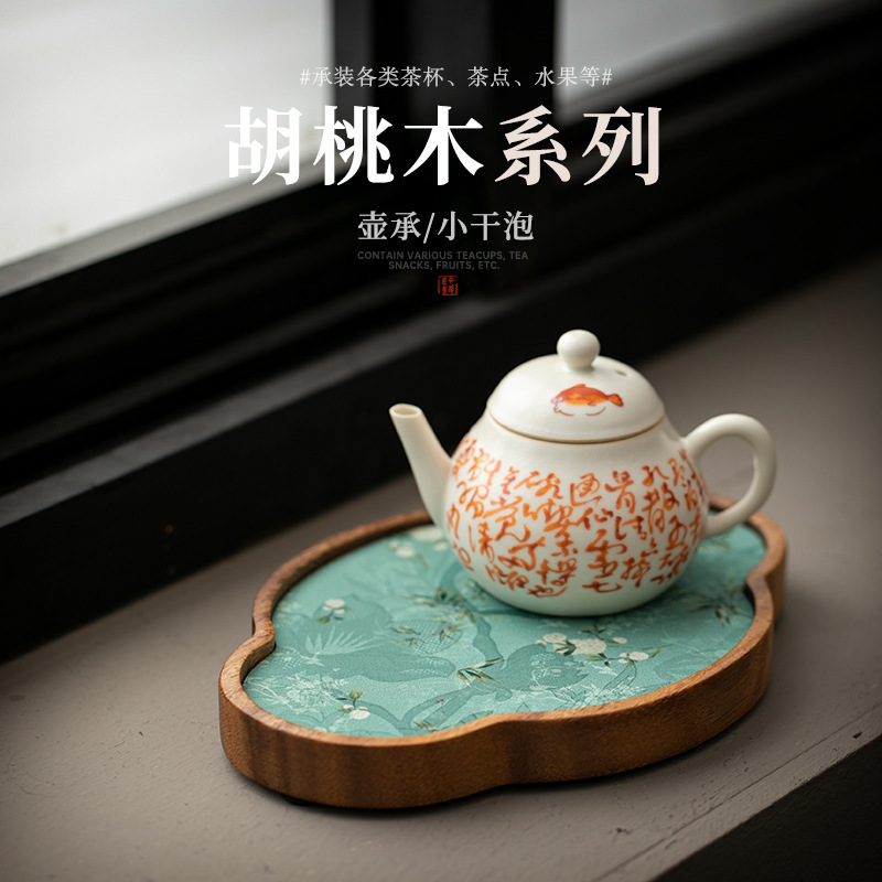 高級胡桃木茶盤小壺承実木小茶台乾泡茶トレー高小型泡急須台座壺マット