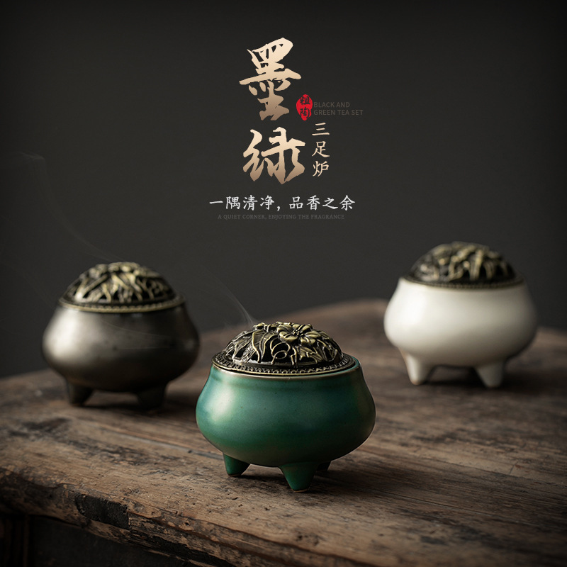 室内家庭用盤香沈香ホノルル蚊取り炉薫香炉盤托室内薫香炉復古陶磁器線香炉