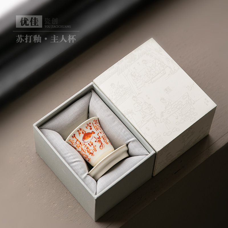 赤い詩文のティーカップの工夫のティーセットの1杯の高級な釉薬の中の彩桂の魚のお茶のお茶の杯はカップを持って主人の杯を敷きます。