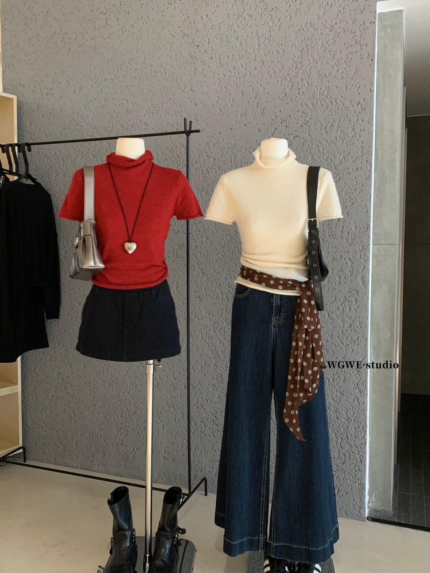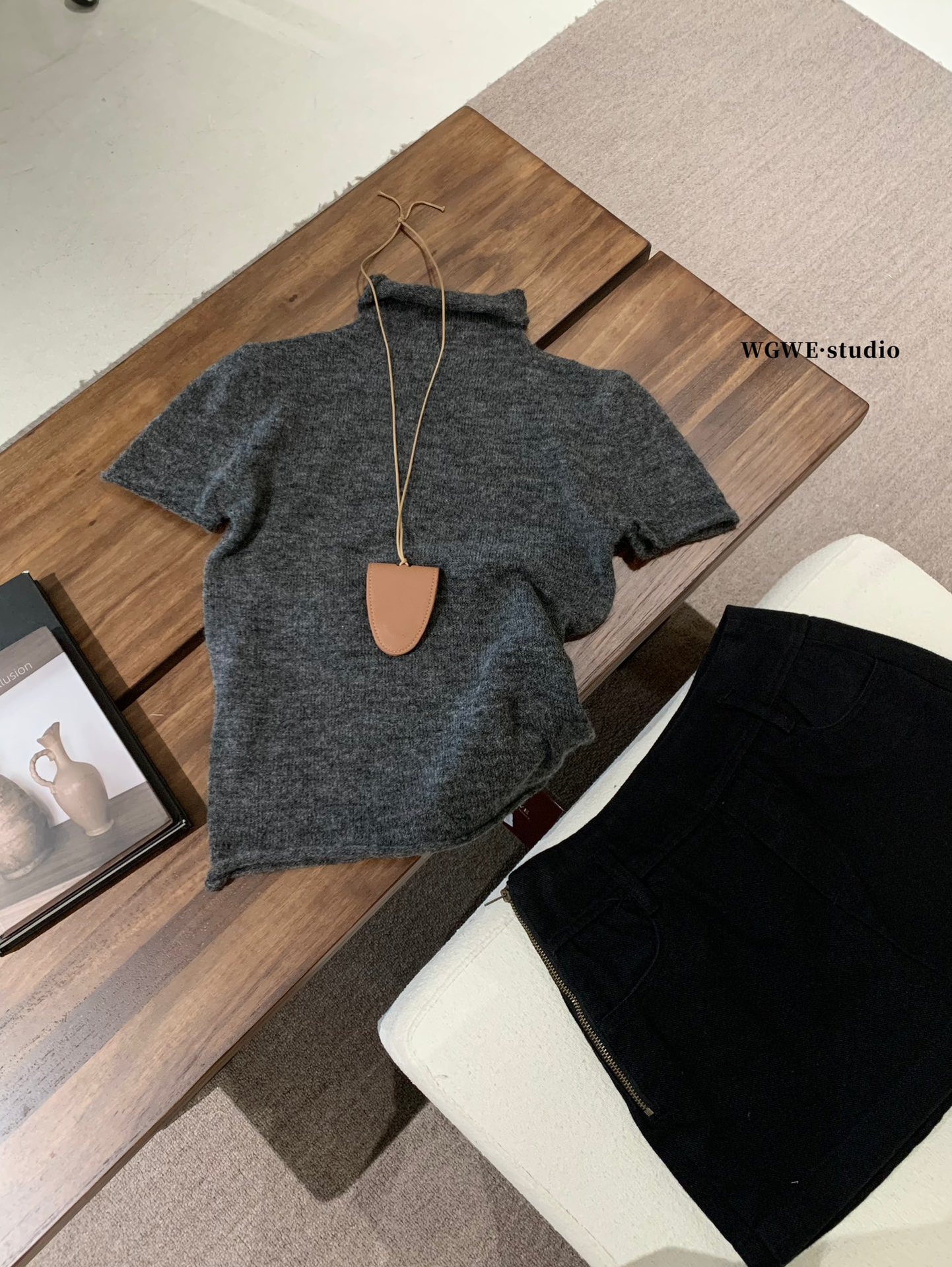 WGWE7197#广州十三行女装2025秋装新款半高领短袖毛衣针织衫上衣