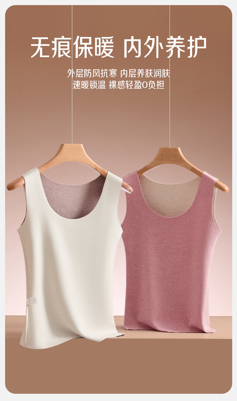 羊绒蚕丝德绒保暖背心女冬季加绒加厚无痕内衣自发热打底保暖上衣