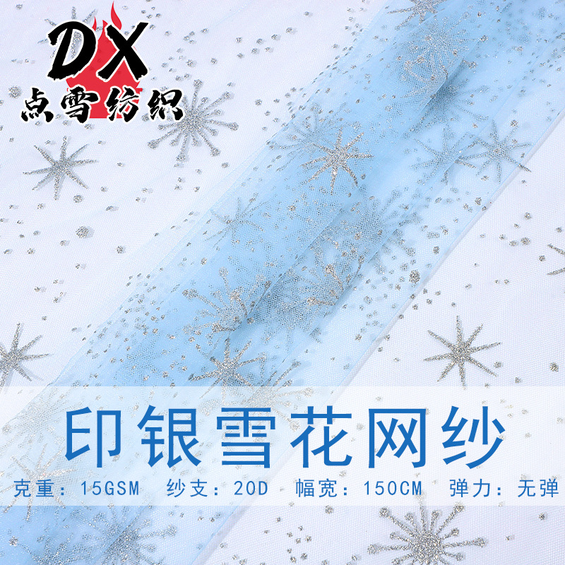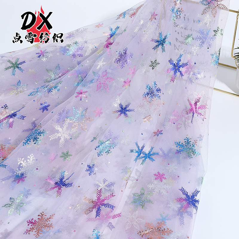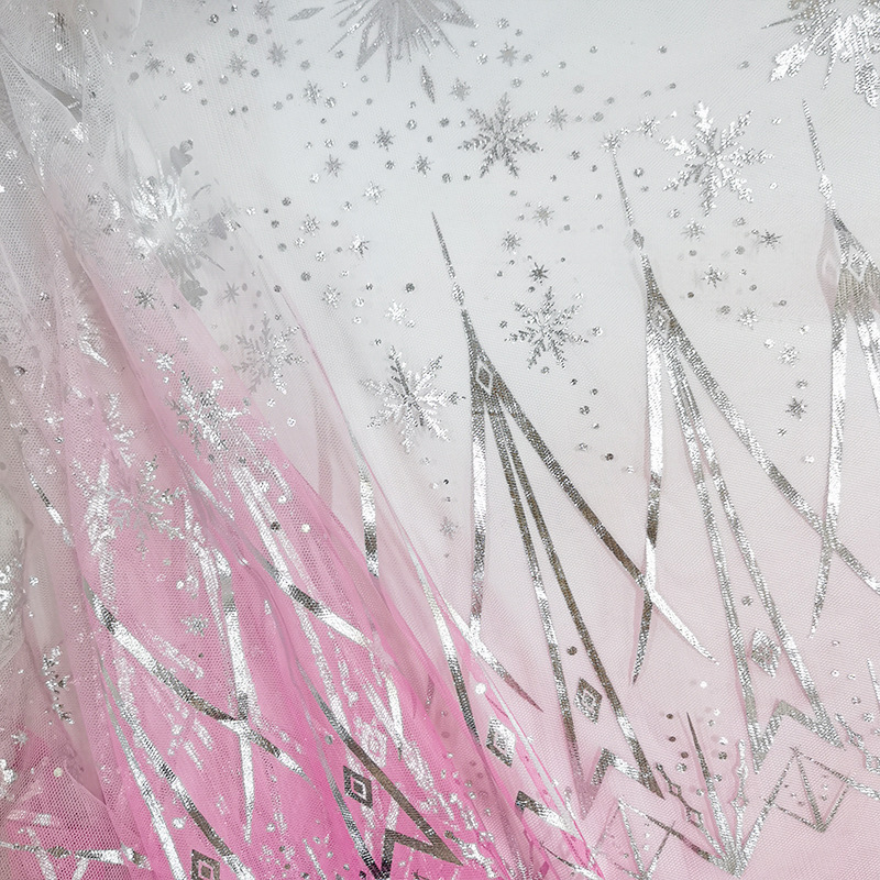 渐变雪花网纱面料六角网眼布烫银网纱童装舞台服女童半身纱裙软纱
