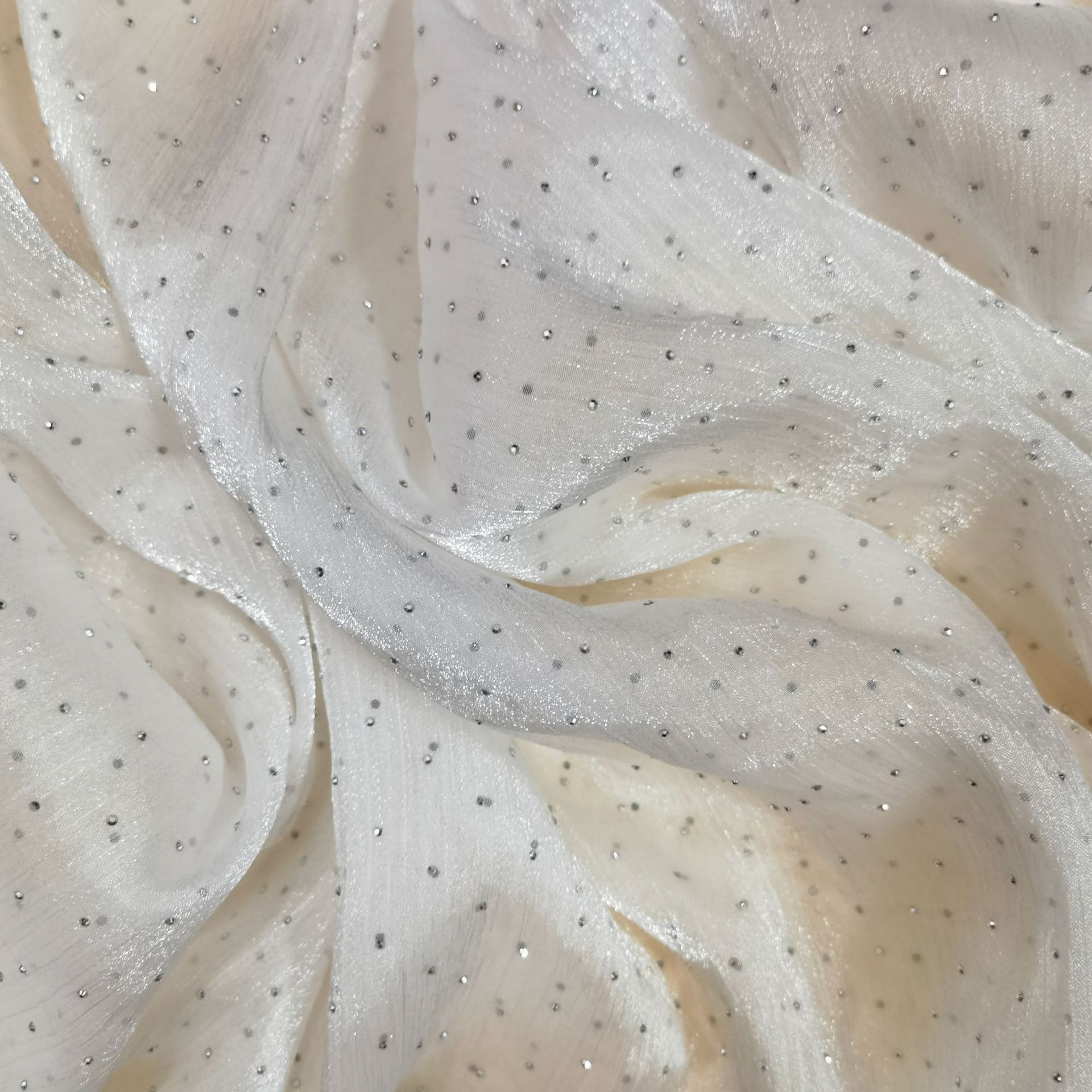 水波纹真丝皱欧根纱闪光绉纱点钻网纱质感时装面料连衣裙服装辅料