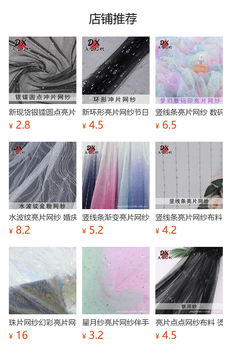 闪闪发光撒粉亮片网纱面料婚纱表演服纱缦道具背景布蓬蓬裙网布新